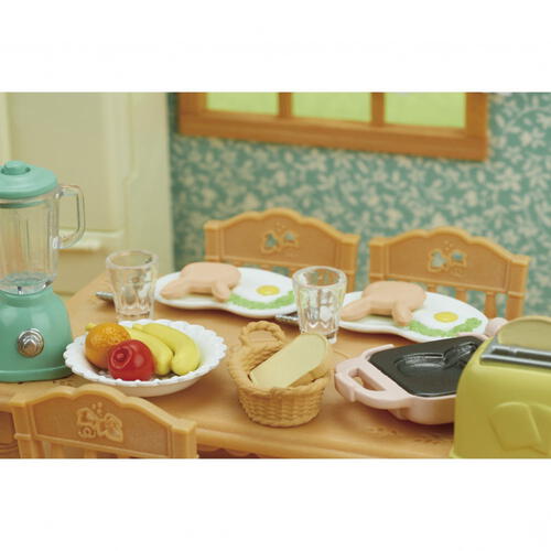 別売りの 「キッチンコンロ・シンクセット」や「ダイニングテーブル」などの、キッチン用品の家具と一緒に遊ぶと、さらに遊びが広がります。