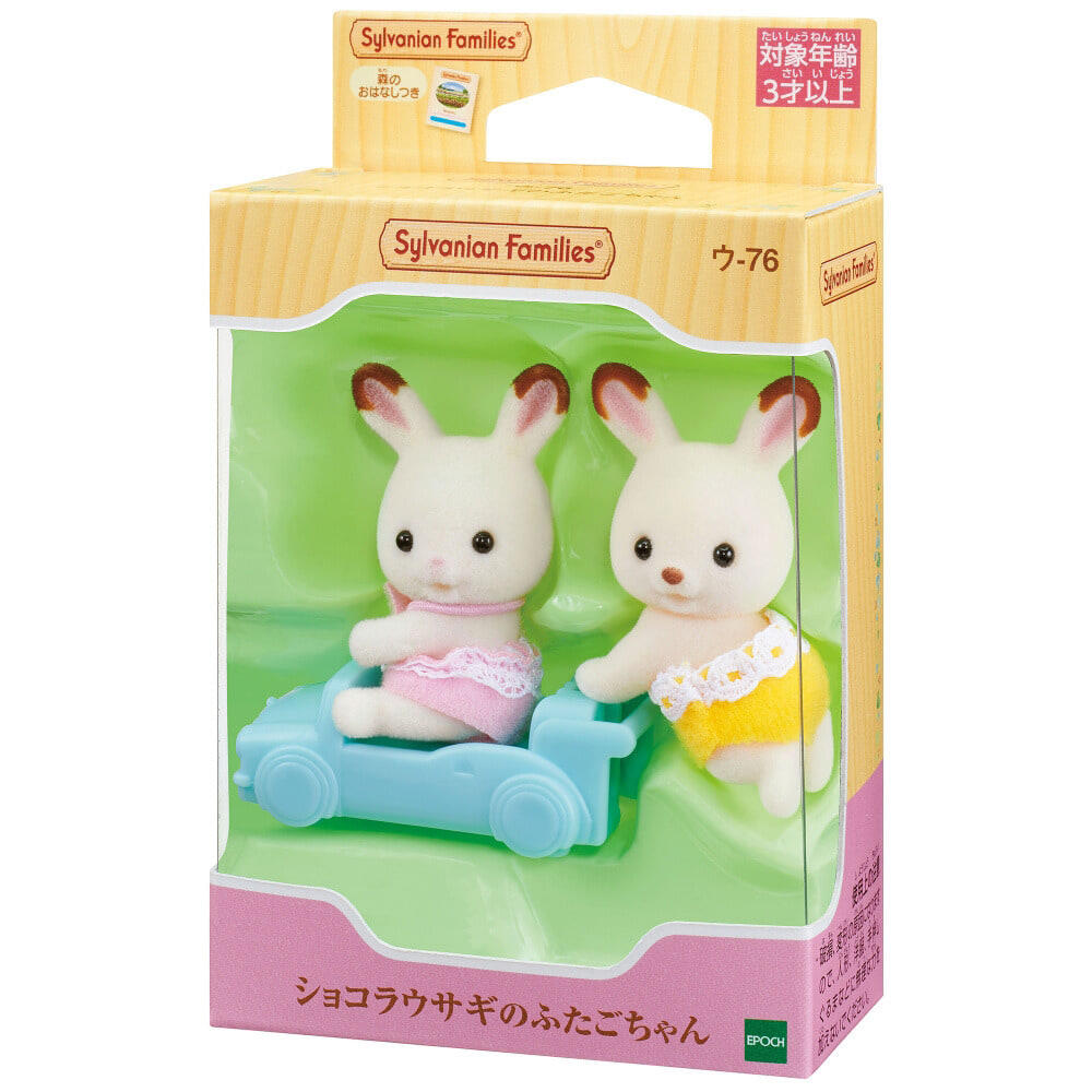 シルバニアファミリーのショコラウサギのふたごちゃん(おすわり、はいはい)と、手押しぐるまのセットです。
