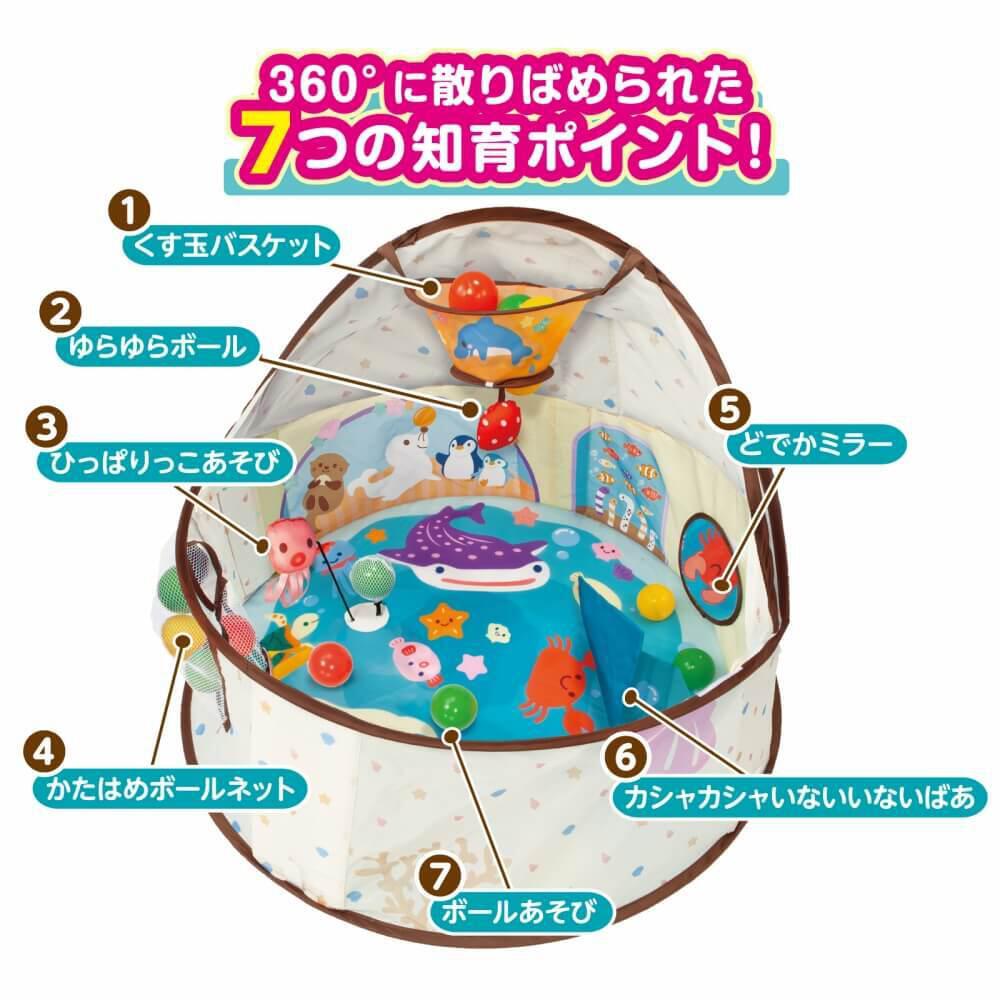 360°に散りばめられたしかけをつかった20種類以上の知育遊びで、中で集中して遊んでくれます!
