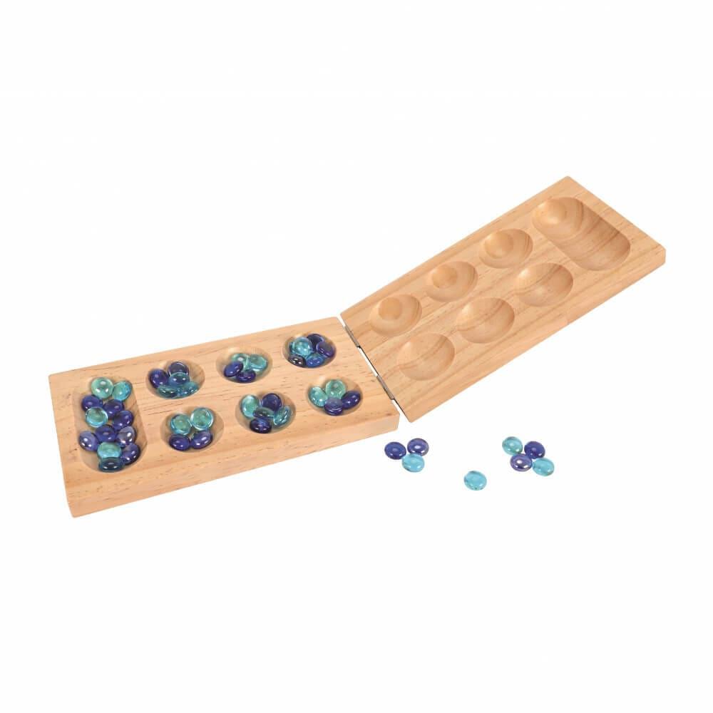 <セット内容>木製マンカラ盤 ×1、ガラス玉 ×48