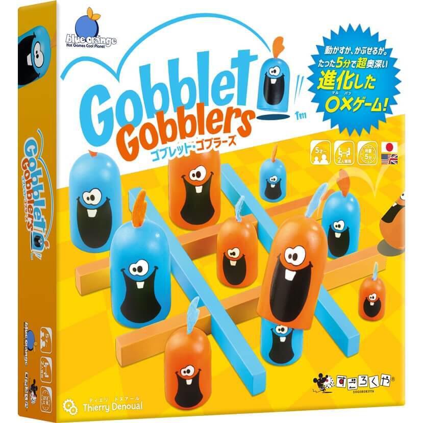 交互に、自分の駒1個を取って、空いているマスに置くか、より小さい駒に被せるように動かし、縦/横/斜めの1列に自色のゴブラーズ3個を並べた人の勝ちです。