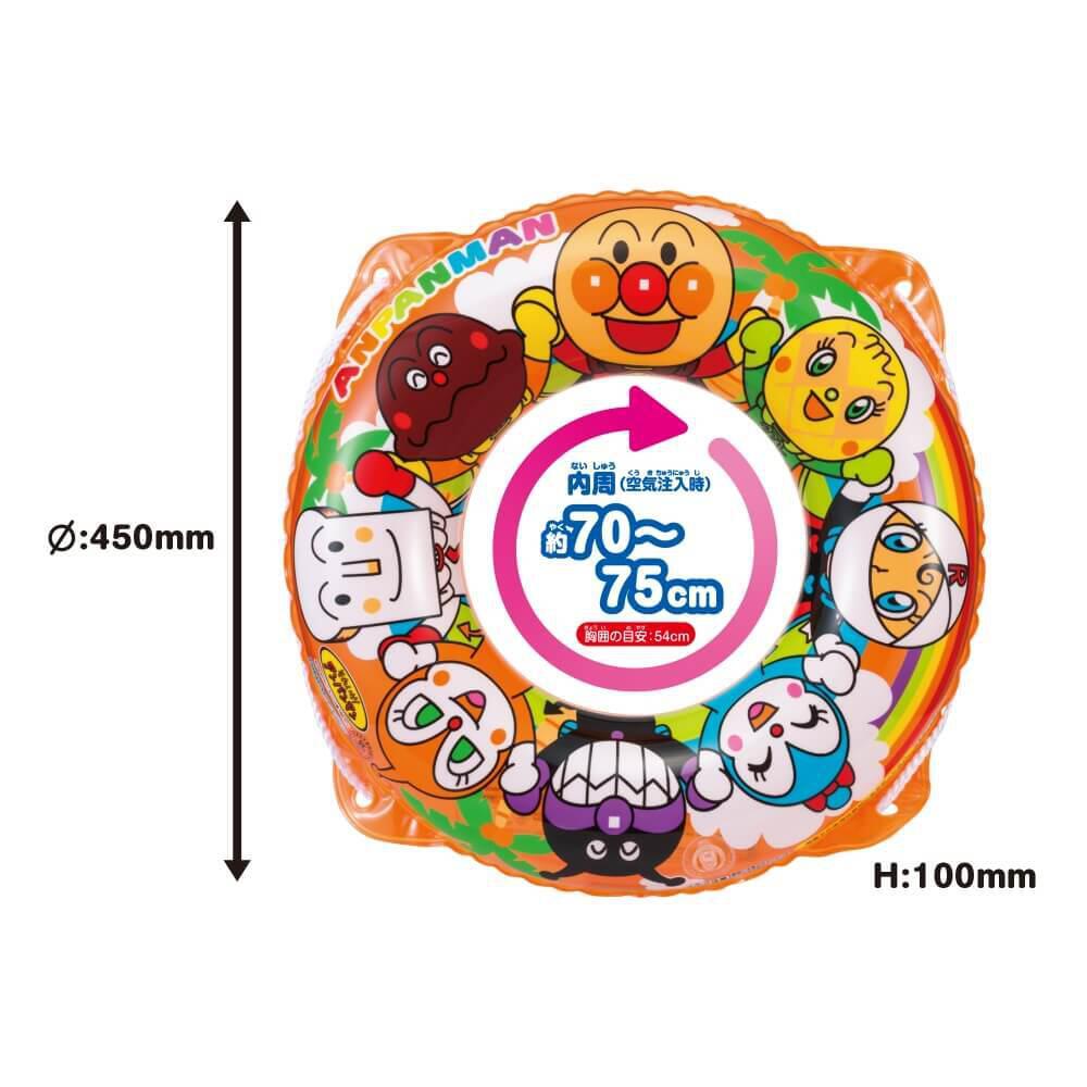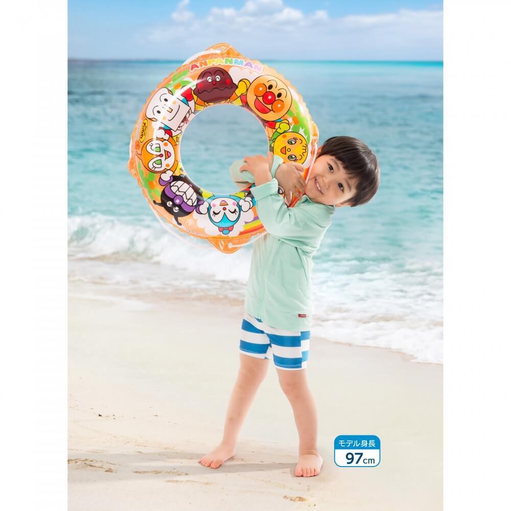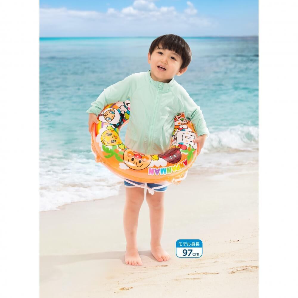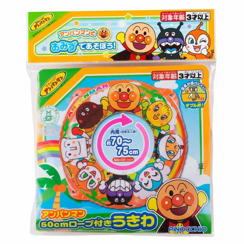 アンパンマンの50cmロープ付きうきわ。アンパンマンとなかまたちが手をつないでいる、元気いっぱいのかわいいデザインになりました。