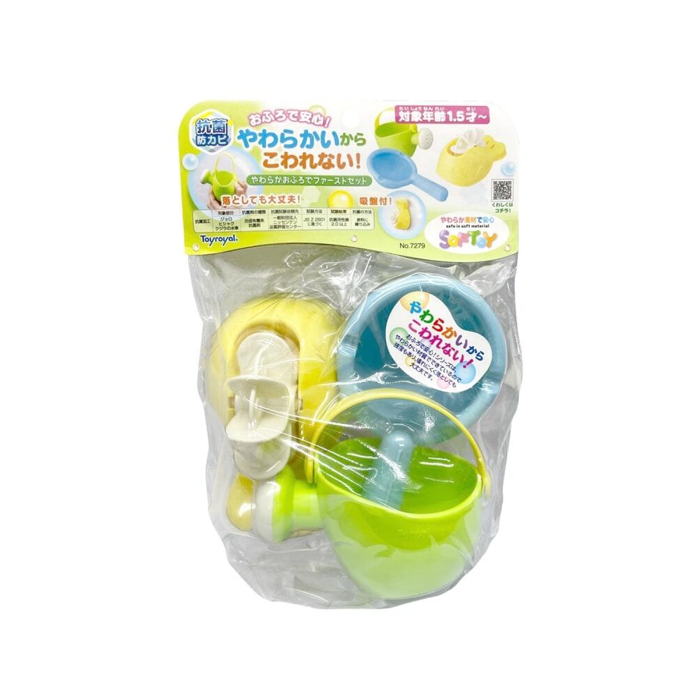 やわらかいから、落としても大丈夫!やわらかおふろでファーストセットは、はじめてのおふろ遊びにピッタリのアイテムです。やわらかヒシャクとやわらかミニジョロ、くじらさんのやわらか水車は吸盤付きなので、おふろの壁や浴槽に簡単に貼り付けても遊べます(注※浴槽や壁の材質によっては貼り付かない場合もございます)