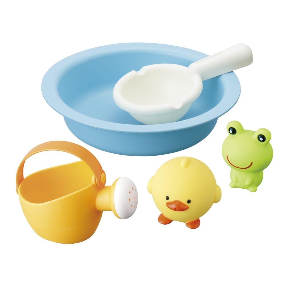 <セット内容>やわらかせんめんき×1、やわらかヒシャク×1、やわらきミニジョロ×1、カエルのみずてっぽう×1、アヒルのみずてっぽう×1