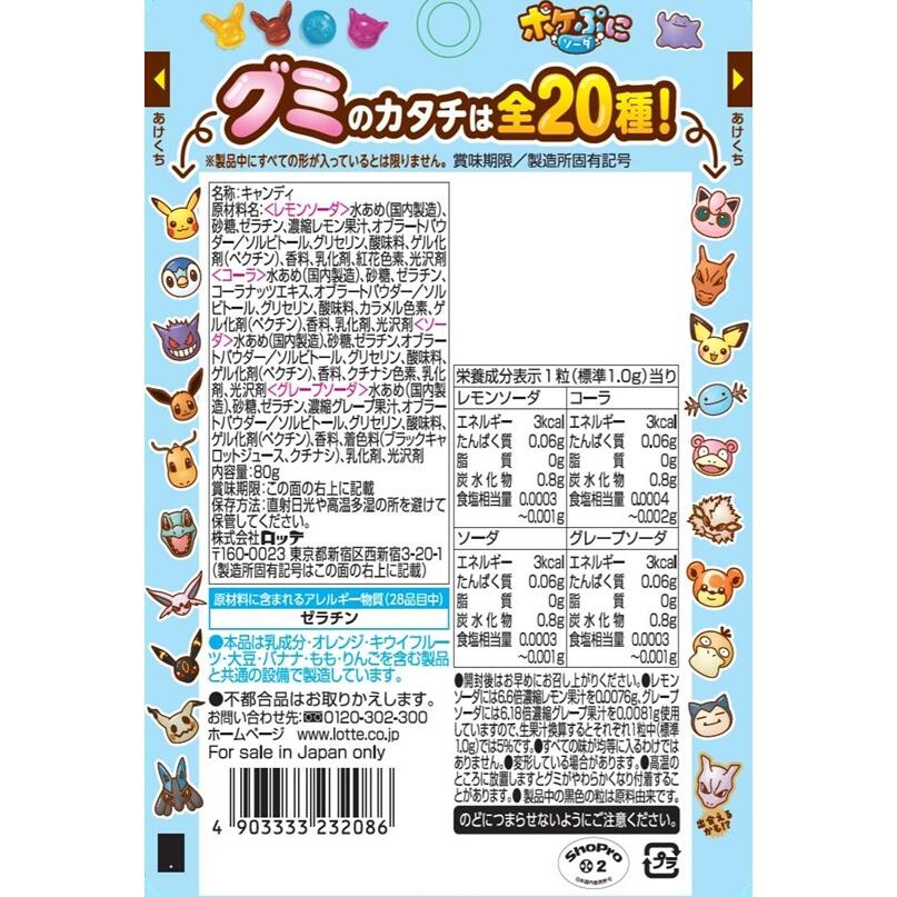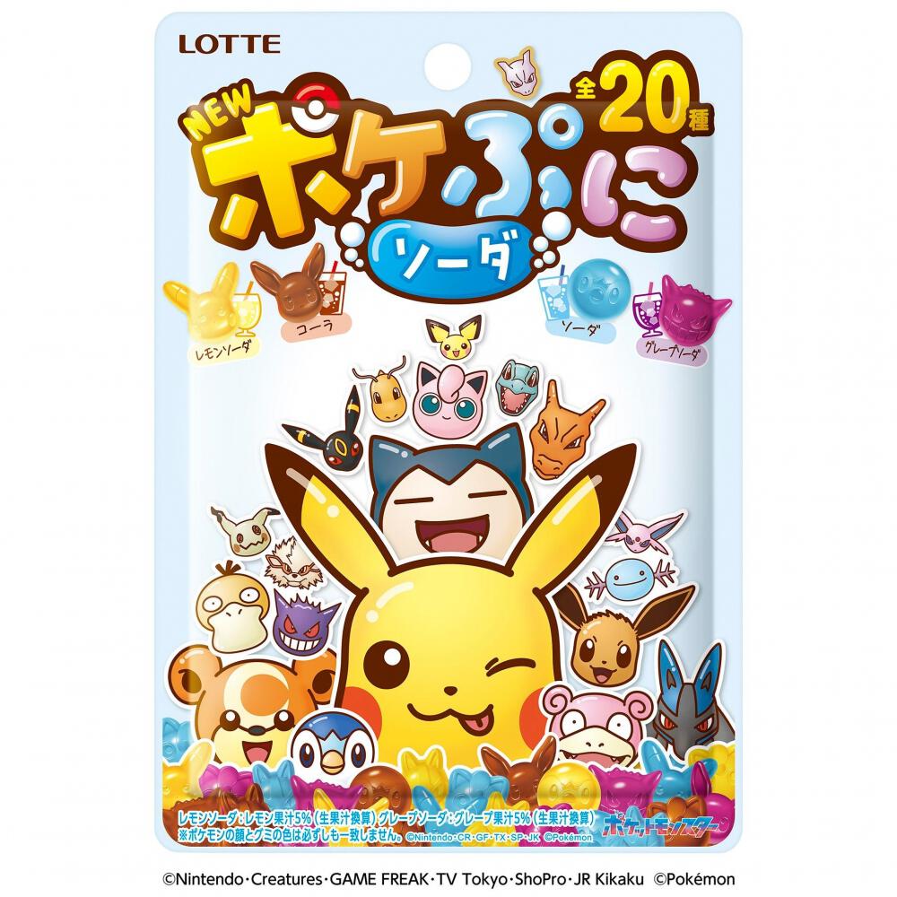 ピカチュウやイーブイなど、可愛いポケモンの顔のグミがいっぱい入った4つの味のソーダアソートグミ。