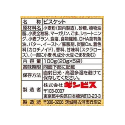 小麦粉(国内製造)、砂糖、植物油脂、小麦全粒粉、マーガリン、ごま、ショートニング、小麦ブラン、食塩、食物繊維、DHA含有魚油、バター、イースト/膨脹剤、炭酸Ca、着色料(カロチノイド)、香料、甘味料(スクラロース)