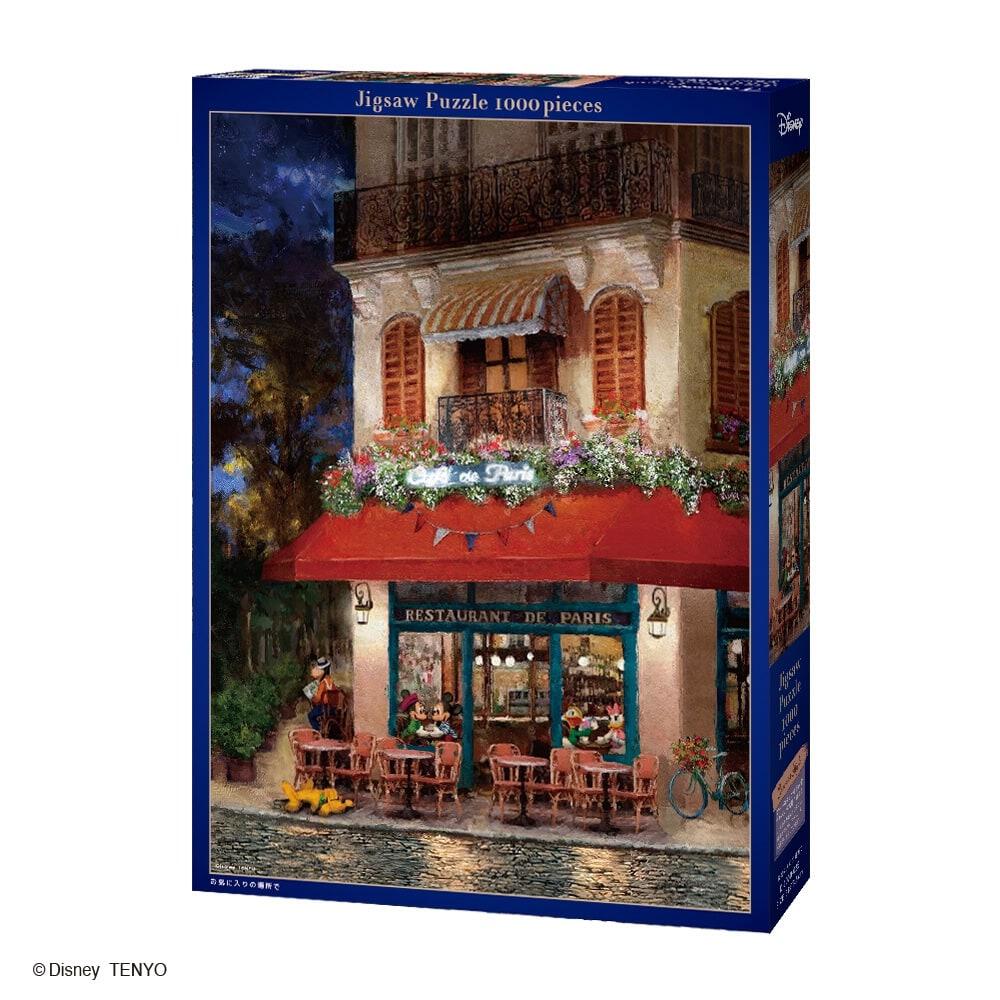 ここはミッキーたちのお気に入りのカフェ。夕暮れ時にライトアップされて、とてもステキ。