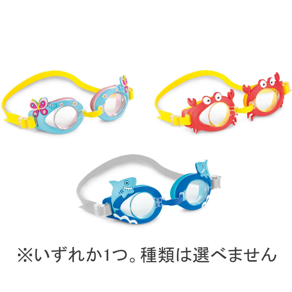 プールや水遊びに大活躍するカラフルなゴーグル!可愛いデザインの3種類アソートです。