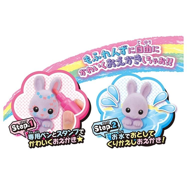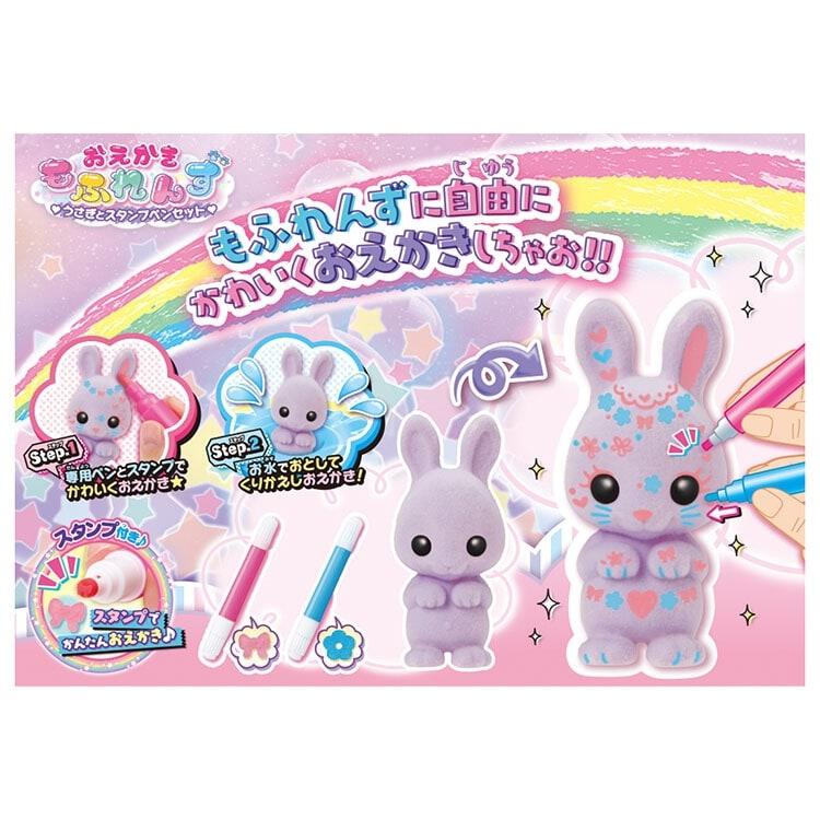 1本でスタンプもペンでおえかきもできるスタンプ付き太ペンが登場!ドール1体(うさぎ)に、スタンプペン2本入り!スタンプはおすだけカンタン!「リボン(ピンク)」と「おはな(ブルー)」の柄になるよ♪おえかきとスタンプでたのしさ・かわいさ倍増!おえかき もふれんず初めての方にぴったりの商品です。お水で落としてくり返しおえかきすることができるから何回でも自由におえかきが楽しめます。<セット内容>うさぎ(1),スタンプ付太ペン ピンク(1),スタンプ付太ペン ブルー(1)