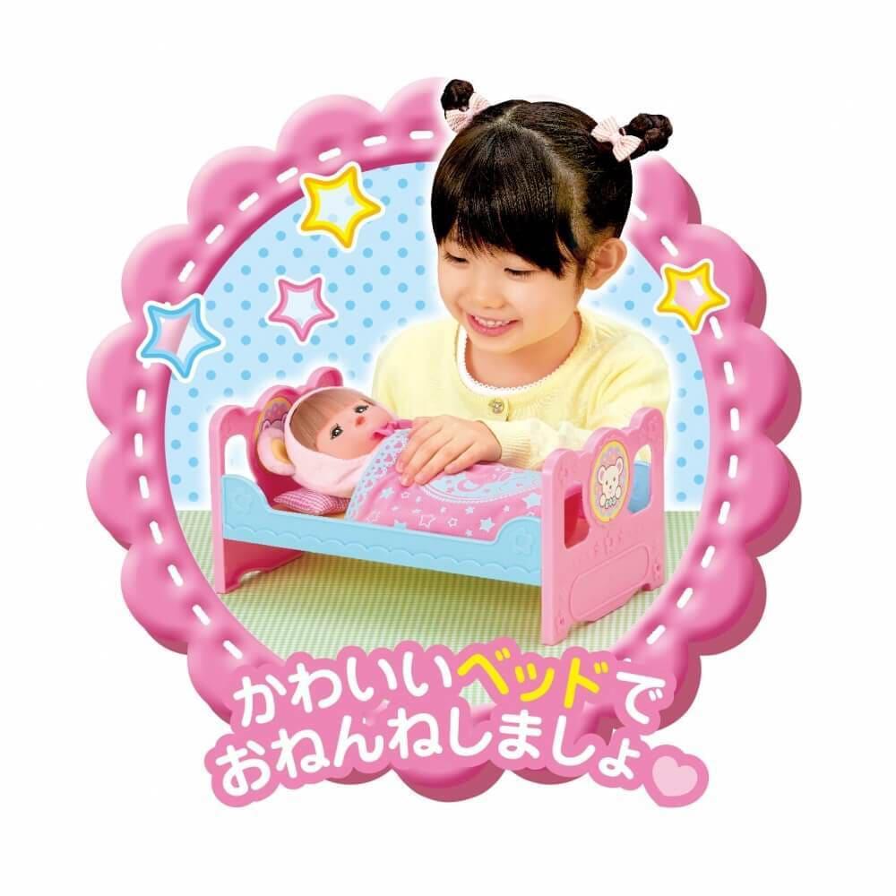 かわいいくまさんのベビーオールを着たメルちゃんとたのしいおせわグッズがいっぱい!