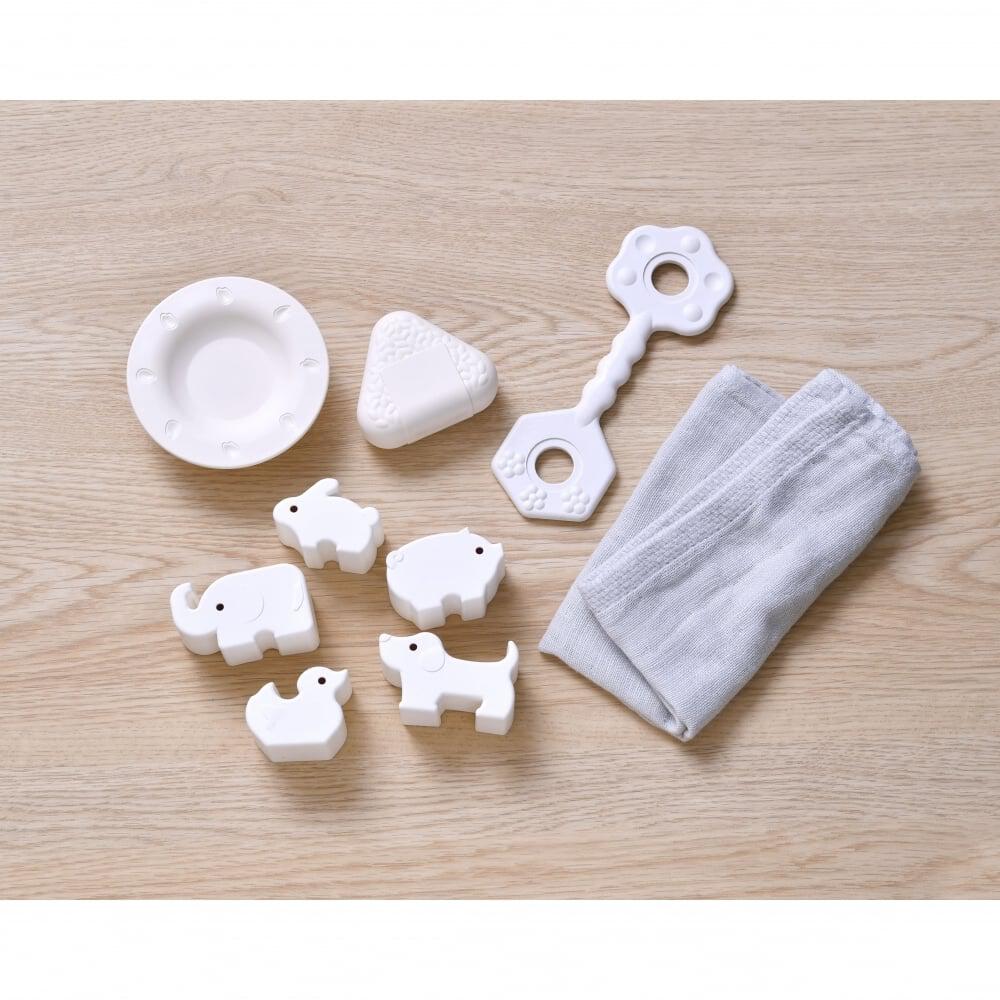 <セット内容>どうぶつつみき5 種、はがためあーち、おにぎり、おさら、たおる