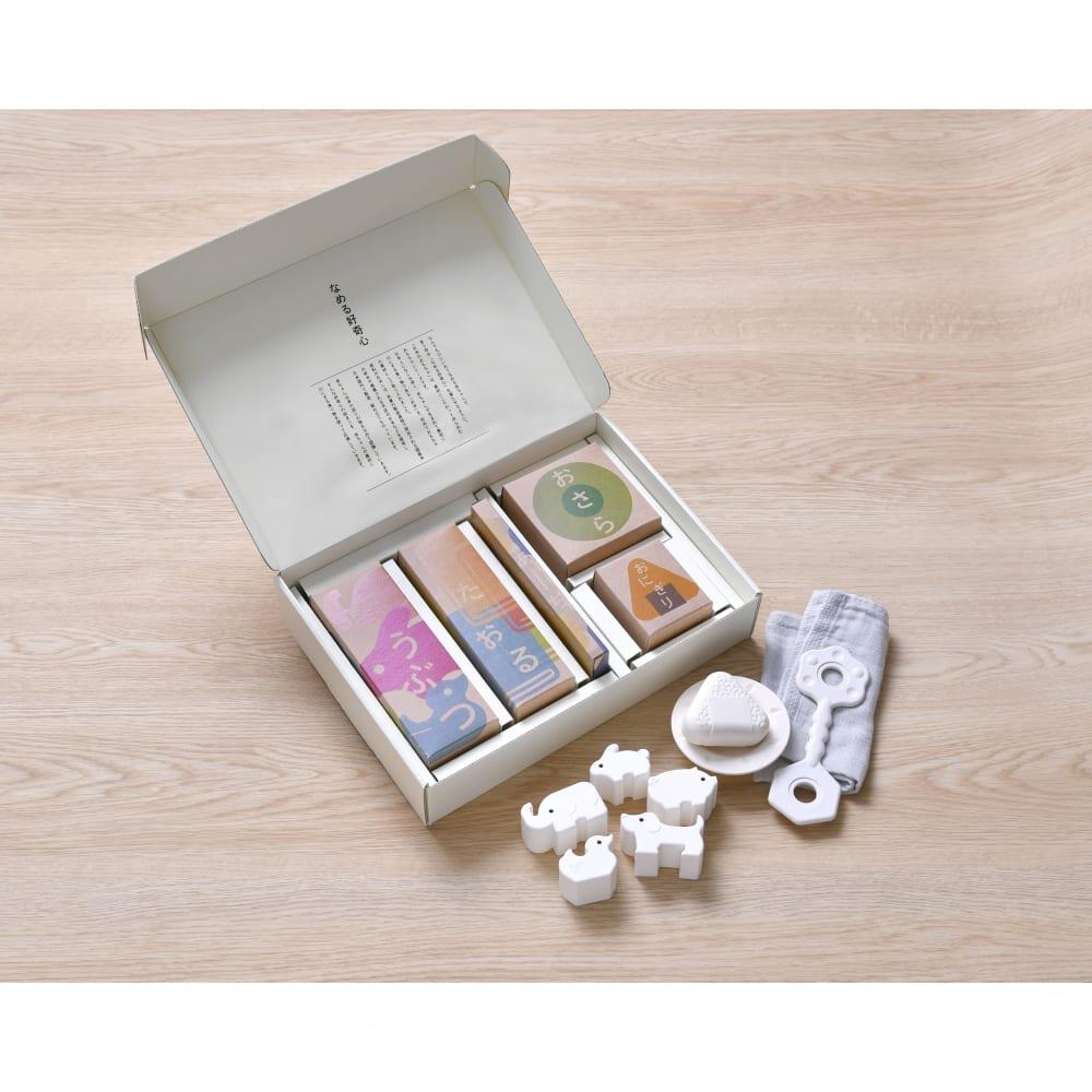 おもちゃごとに専用小箱に丁寧に詰合わせ。出産祝いにぴったりのギフト仕様です。