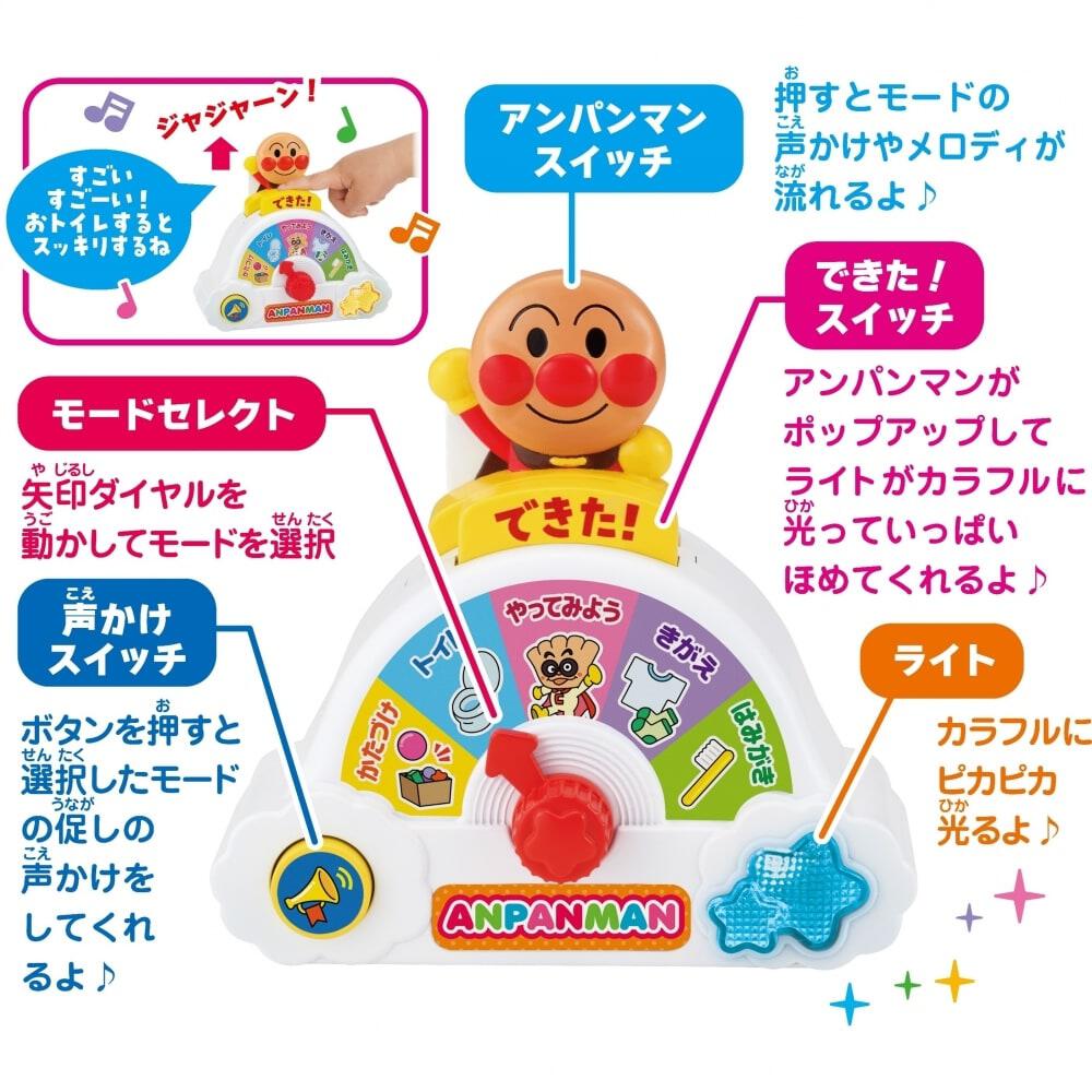 カラフルにピカピカ光る!ファンファーレが流れてアンパンマンがいっぱい褒めてくれるよ♪