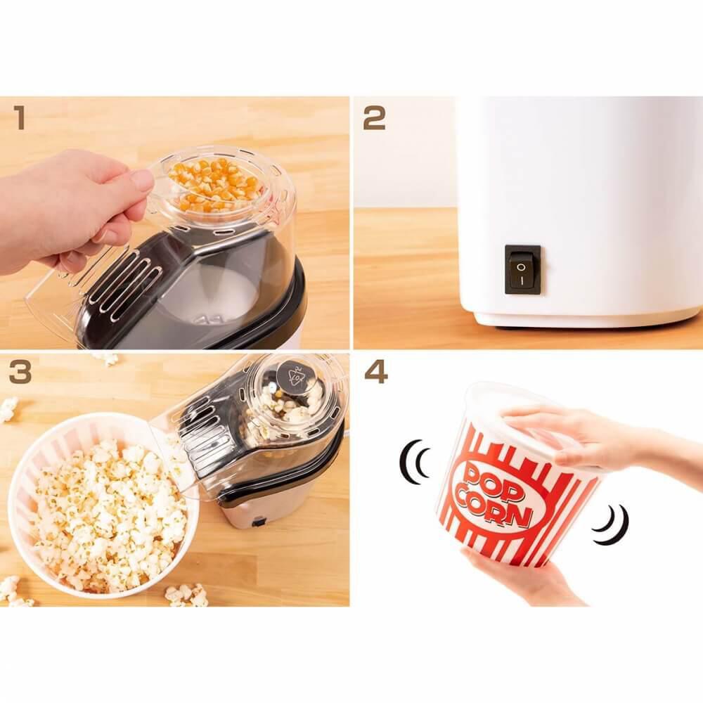 でき上がったポップコーンは他の容器に移し替えず、そのまま食べられます。