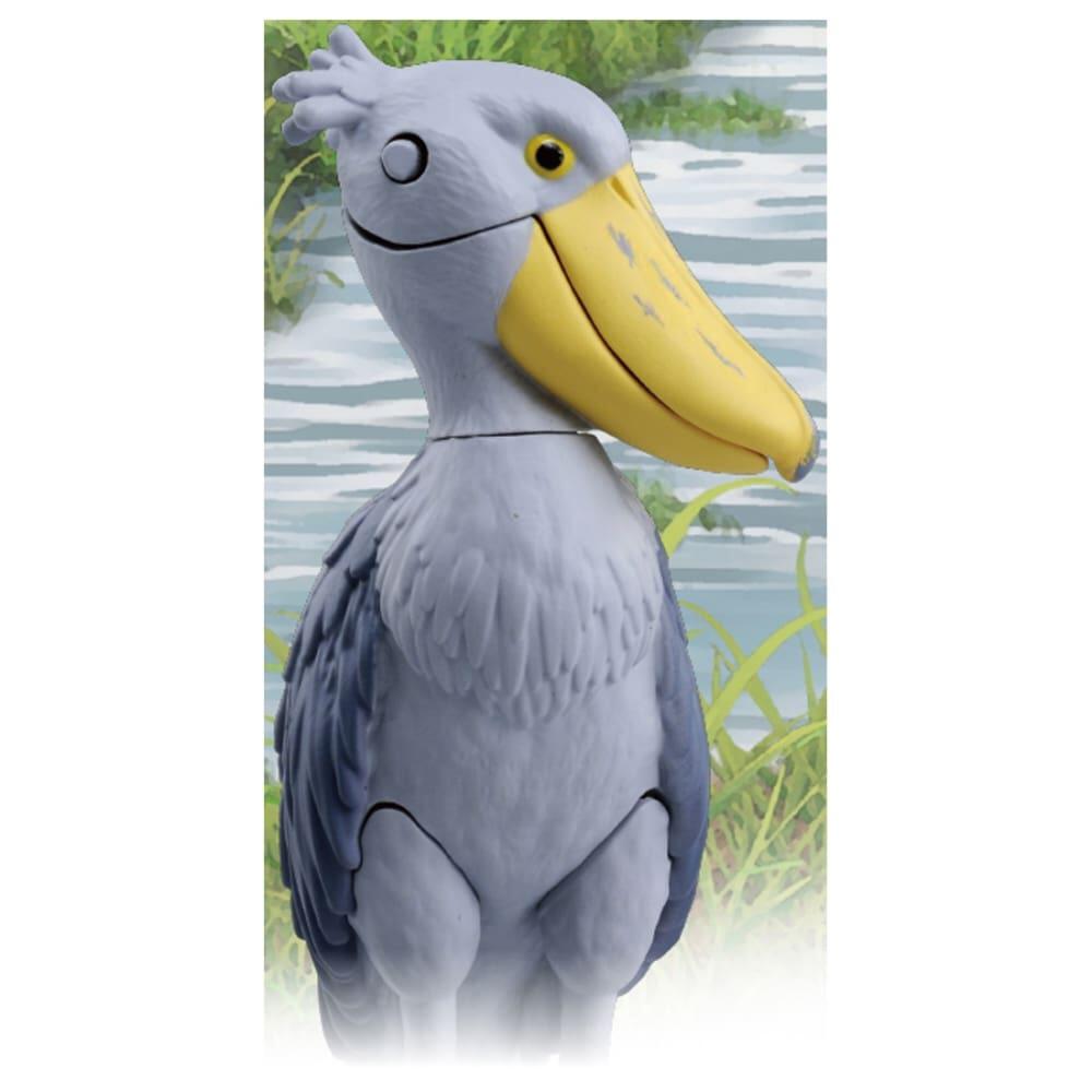 アニア ASシリーズに「ハシビロコウ」が登場!ハシビロコウは、頭、くちばしが動きます。フィギュアを持って上下に振ると、くちばしがカタカタ鳴り、ハシビロコウ特有のクラッタリング(クチバシを鳴らす行為)が表現できます。<セット内容>フィギュア(1),図鑑カード(日本語)(1),図鑑カード(英語)(1)