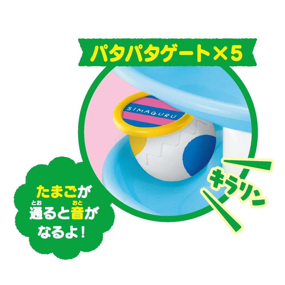 5枚のパタパタプレートはたまごが通るたびにそれぞれ楽しい音が流れ、2つのモードで音も変わります。