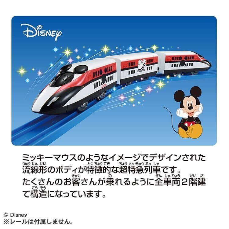 ミッキーマウスのようなイメージでデザインされた流線形のボディが特徴的なプラレールオリジナルの超特急列車が登場!