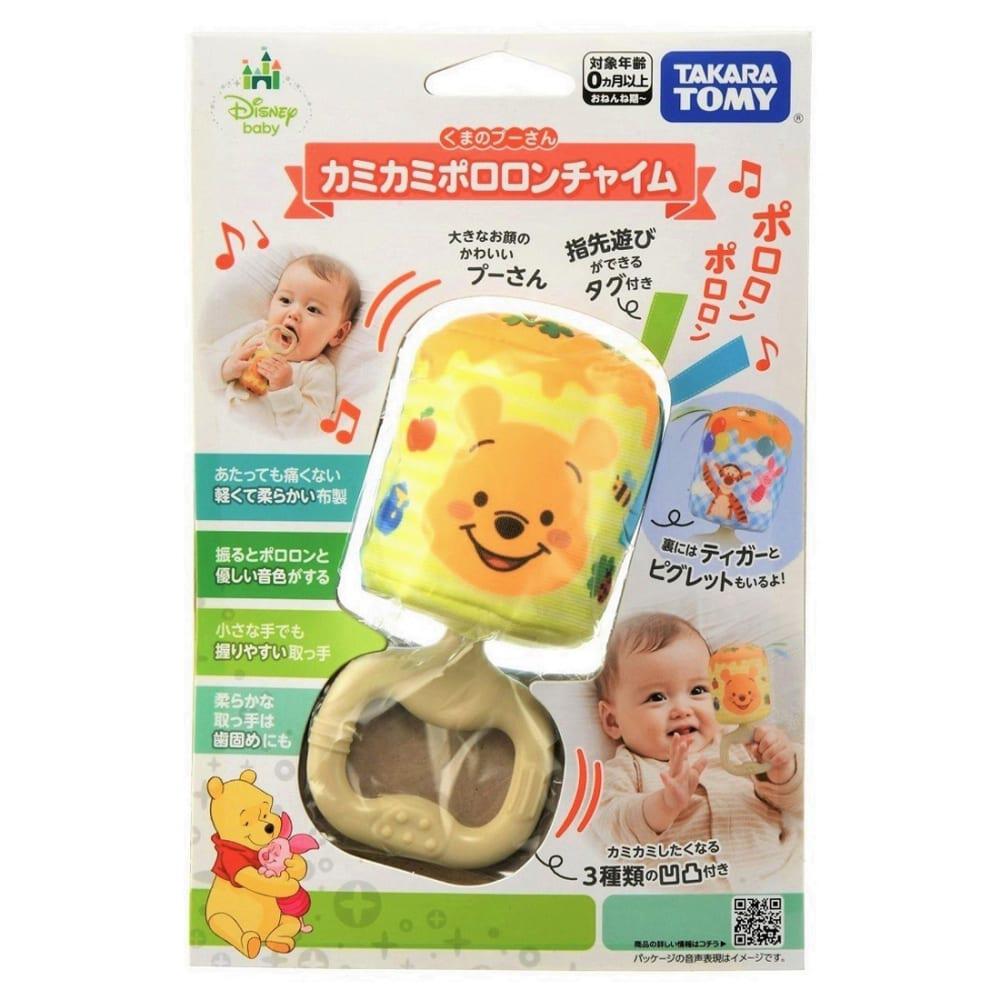 握りやすく歯がためにもなる取っ手がついた、綺麗な音色がするくまのプーさんのチャイム。