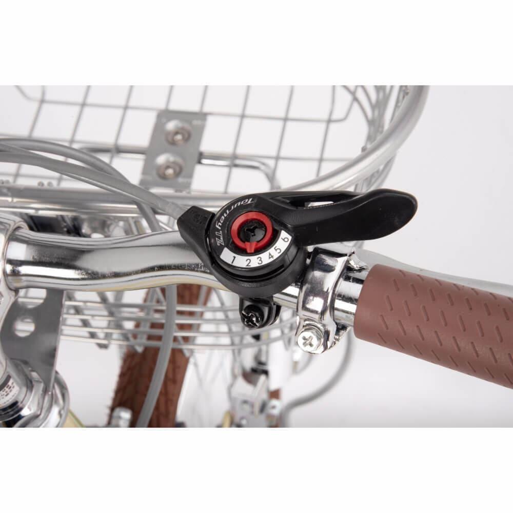 外装6段変速を搭載、しっかりとグリップを握れるようにシフターはレバー式を採用。