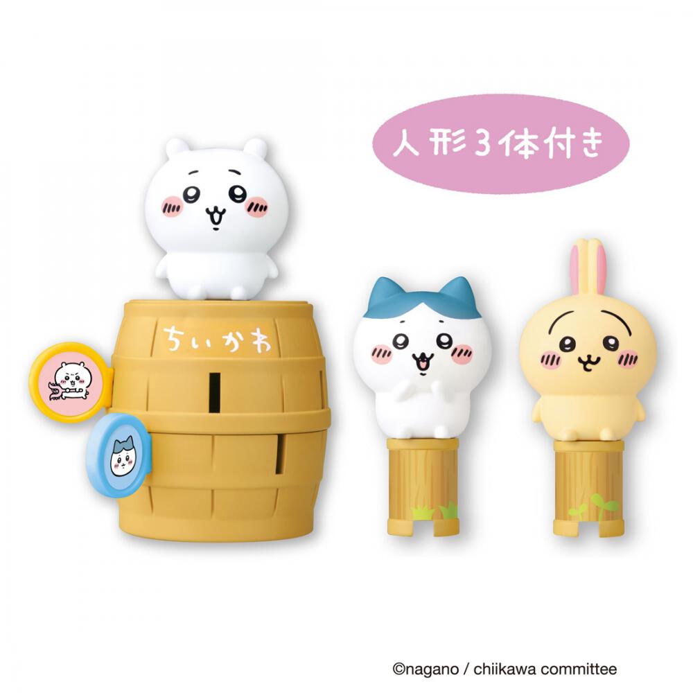 ちいかわたちがタルからとびだすよ! ちいさくてかわいい手のひらサイズのタルに、好きなキャラクターの人形(ちいかわ・ハチワレ・うさぎ)を選んでセットしよう!スティックをさすと、タルから飛び出すよ! オリジナルスティック付き! プレイ人数: 1人~数人用セット内容:タル(1),ちいかわ人形(1),ハチワレ人形(1),うさぎ人形(1),スティック(イエロー・ブルー各5本)(10),スティック用シール(1)