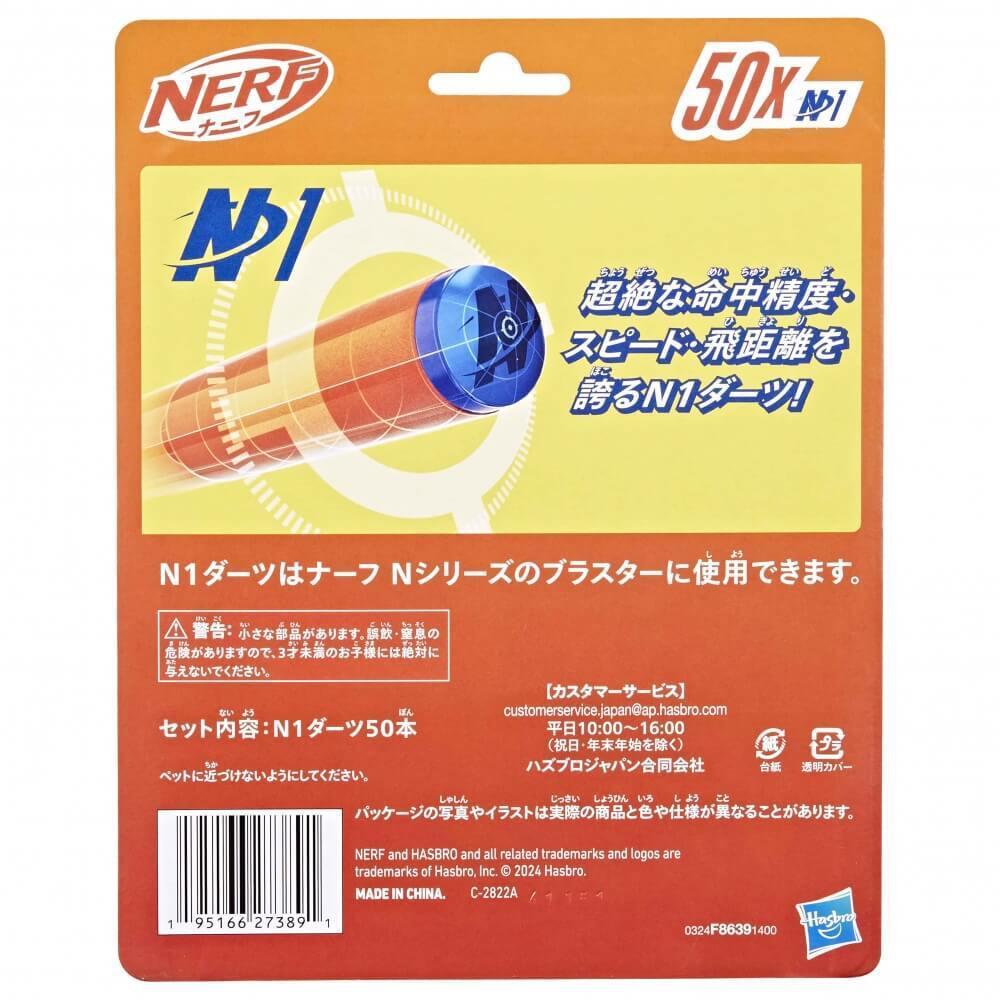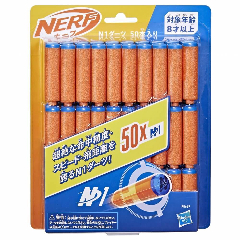 【ナーフ N1ダーツ50本入り】パッケージにはナーフ N1ダーツが50本入っています。N1ダーツはナーフ Nシリーズのブラスターに使用できます。