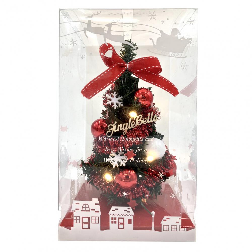 キラキラ光る卓上ミニクリスマスツリー 23cm レッド×ホワイト