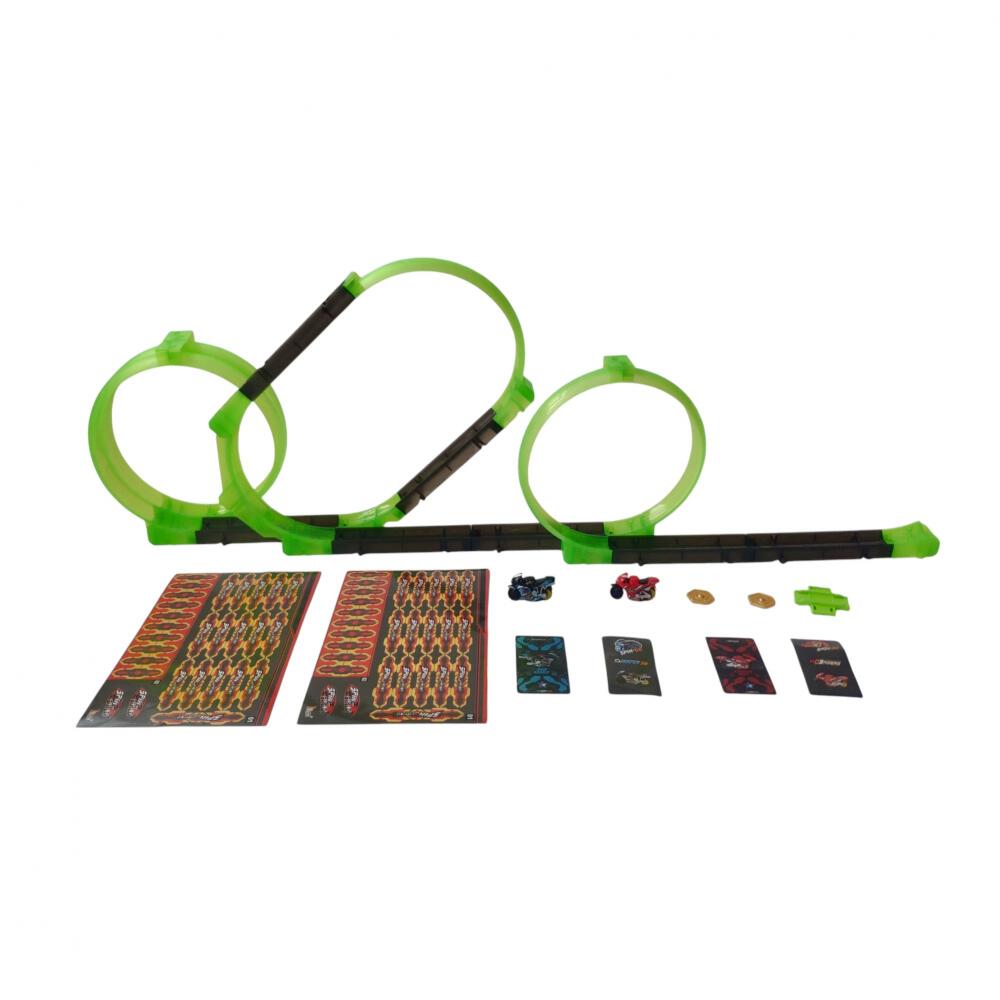 <セット内容>フリクションバイク本体×2、コース本体×1セット、コース用ステッカー×1、バイクカード×2、ターゲットコイン×5、キャラクターステッカー×2