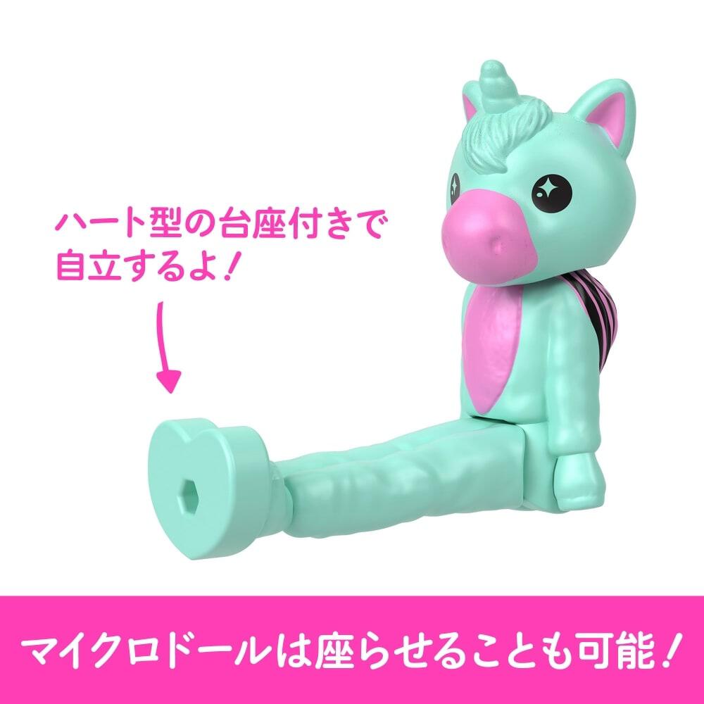 マイクロドールにはハート型の台座がついており自立し、座らせることもできるので、同じシリーズののりものやハウスと一緒に遊べます。ミニバービーランドの他ののりものやハウス、マイクロドールを集めて自分のミニバービーランドを作ろう!