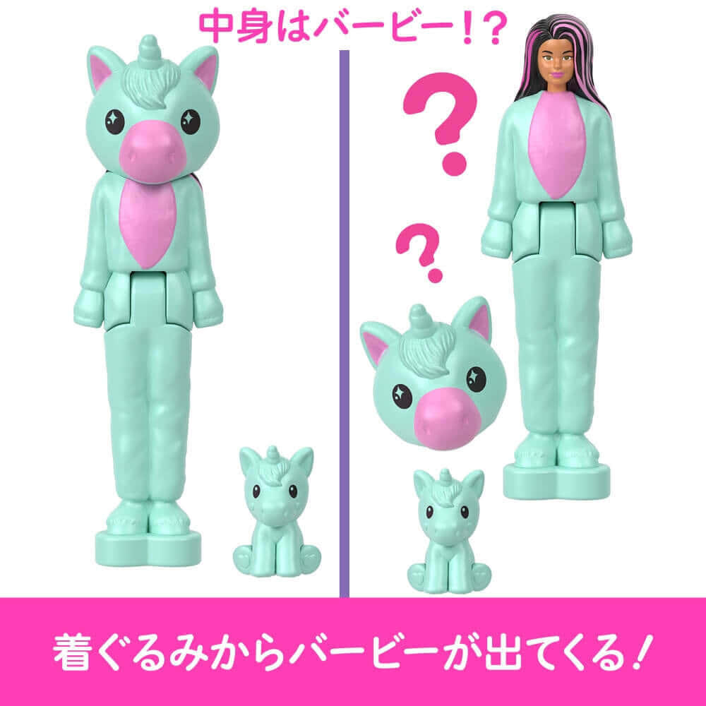バービーのキュートアップシリーズをモデルに作られたマイクロドールは全部で6種類、何が出てくるかお楽しみのサプライズトイ!着ぐるみと同じ動物(ペット)もついています。