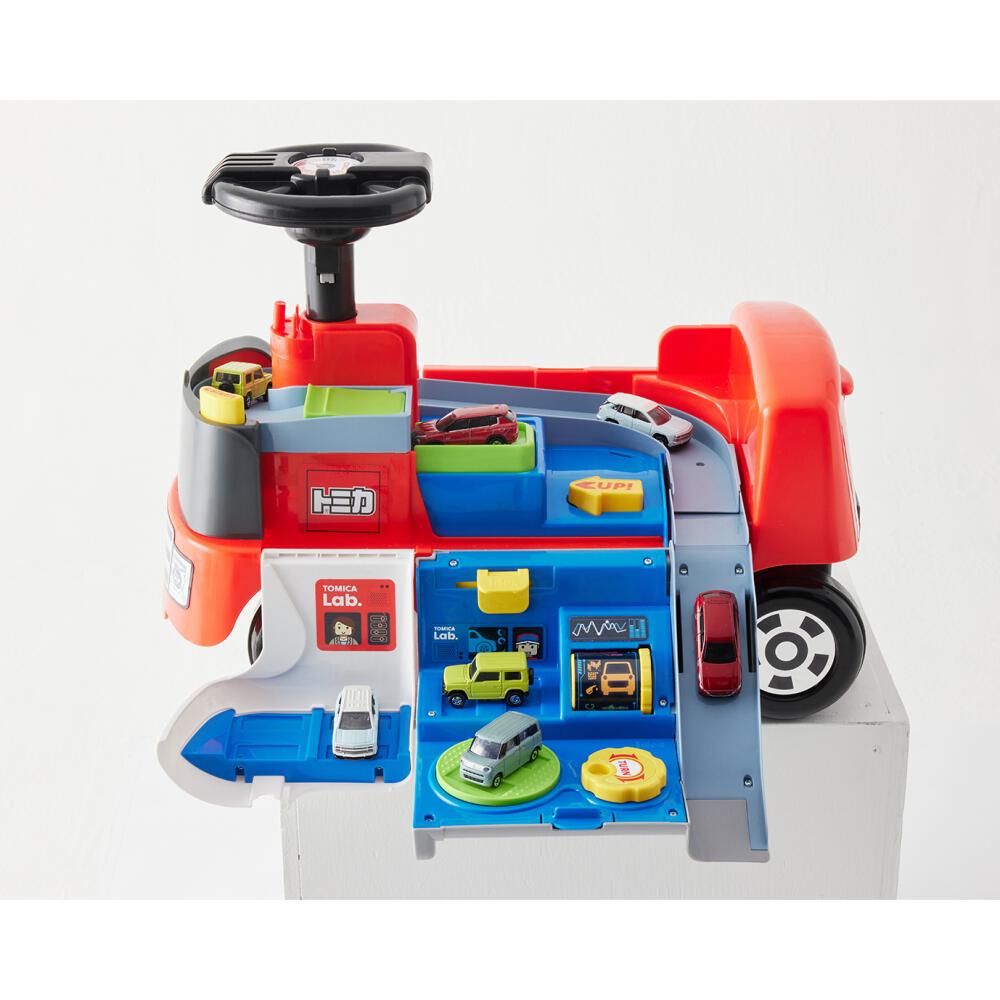 トミカが大好きなお子様に。トミカに乗れる!トミカ遊びができる乗用玩具!1台2役長~く遊べるトミカサーキットトレーラー。