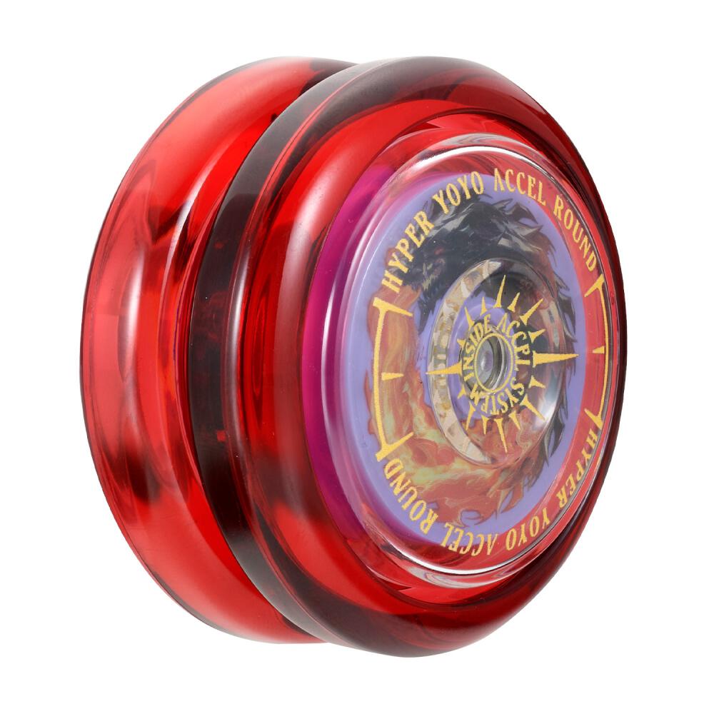 本体を手に持った状態でストリングを勢いよく引くことで、本体を投げずに高速回転させることができる日米で特許出願済の新機能「アクセルシステム」を搭載したハイパーヨーヨーシリーズです。本機能を搭載したことにより、従来のヨーヨーでは再現不可能な新たなトリックが可能となりました。