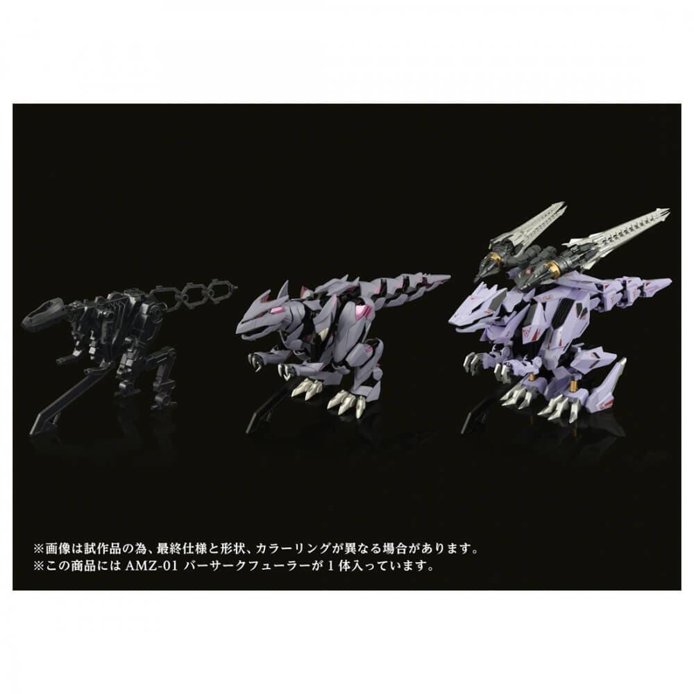 ライガーゼロや一部ゾイドでは設定されている「野生体」、バーサークフューラーは野生体をベースに作られたゾイドである設定を深堀り、本商品のために野生体のデザインを新たに起こし、動物のしなやかな動きを再現する可動フレームを完成させつつ、バーサークフューラーのデザインを落とし込んで再構築。
