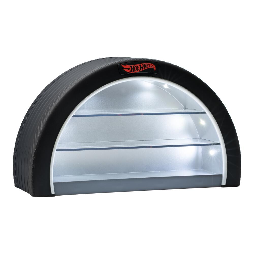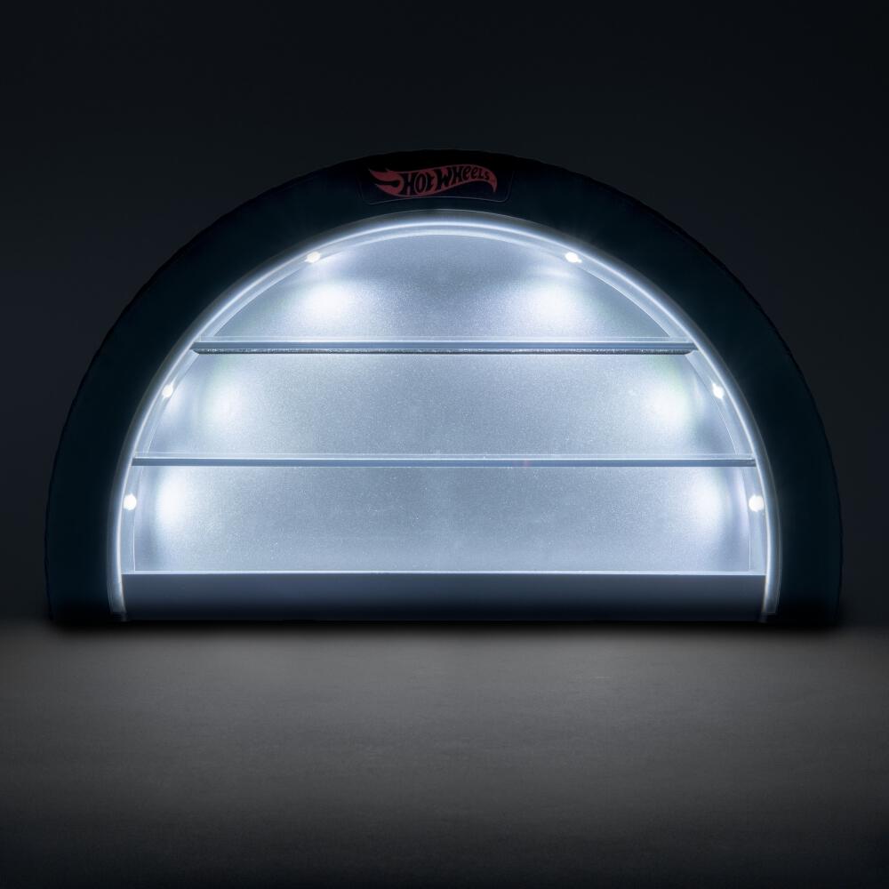 トイザらス限定のホットウィール収納ケース 。横幅(約)25cmでミニカー最大7台収納でき、LEDライト付きの半円タイプのディスプレイケース!前カバー無しだから、出し入れ簡単!インテリアとしてもおしゃれに飾れます。