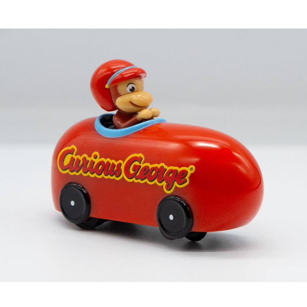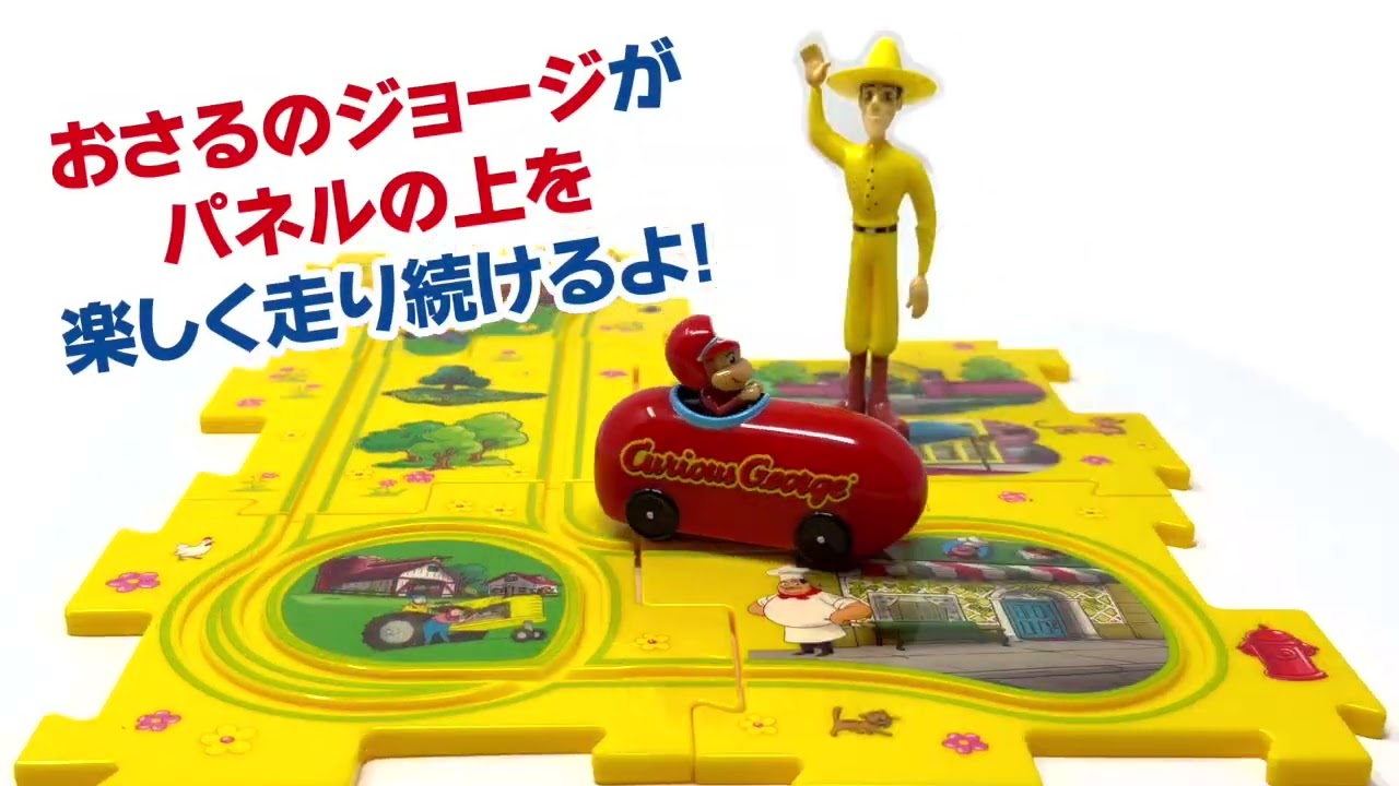 おさるのジョージが乗った車が、楽しく街を走りま割ります。 黄色い帽子のおじさんフィギュア付きです。