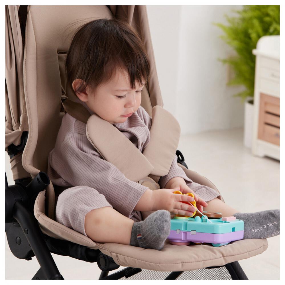 3WAY おでかけ遊び(6ヶ月頃~):取り外し可能な知育ボードや小物をいつでも持ち歩けます。