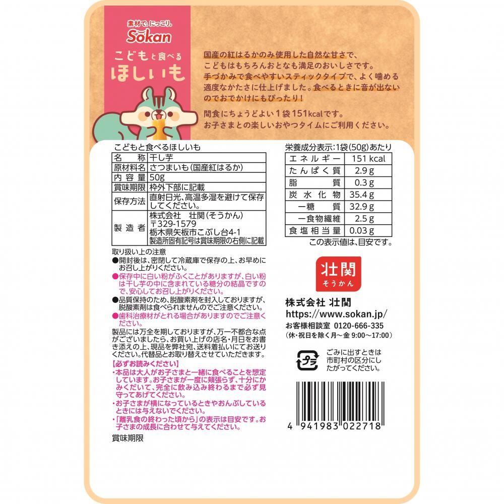 ママ・パパの声から生まれた。さつまいもだけを使った自然派おやつです。離乳食の終わった頃から。