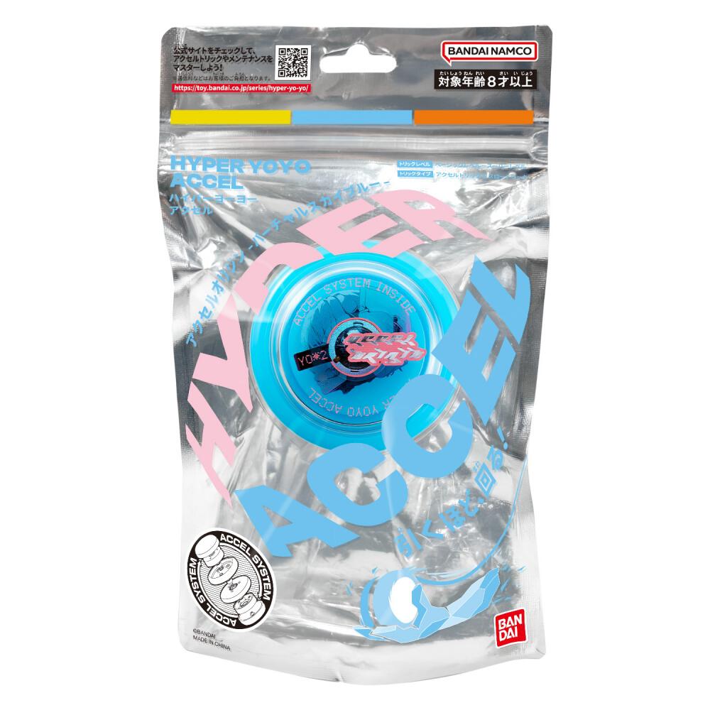 本体を手に持った状態でストリングを勢いよく引くことで、本体を投げずに高速回転させることができる日米で特許出願済の新機能「アクセルシステム」を搭載したハイパーヨーヨーシリーズです。本機能を搭載したことにより、従来のヨーヨーでは再現不可能な新たなトリックが可能となりました。