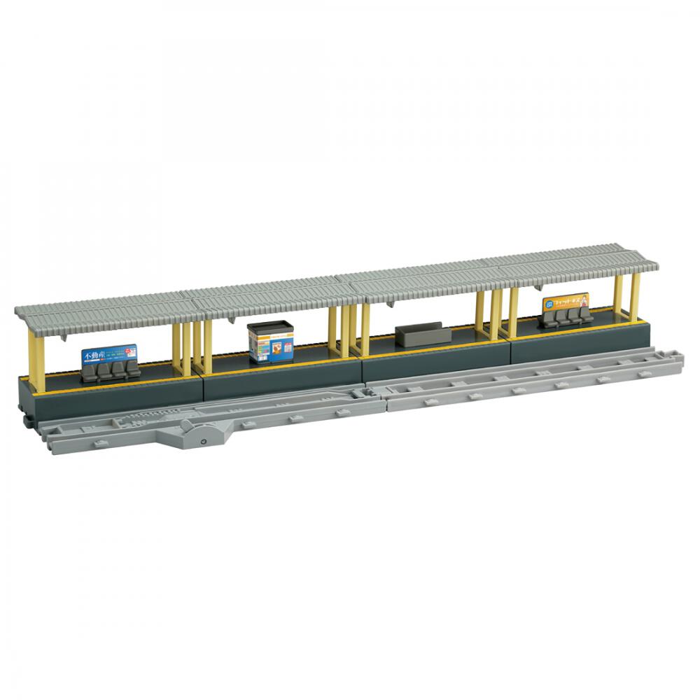 つなげると直線2本分の島式ホームと、リアル直線レール、ストップレール(リアルレール仕様)付きキットです。