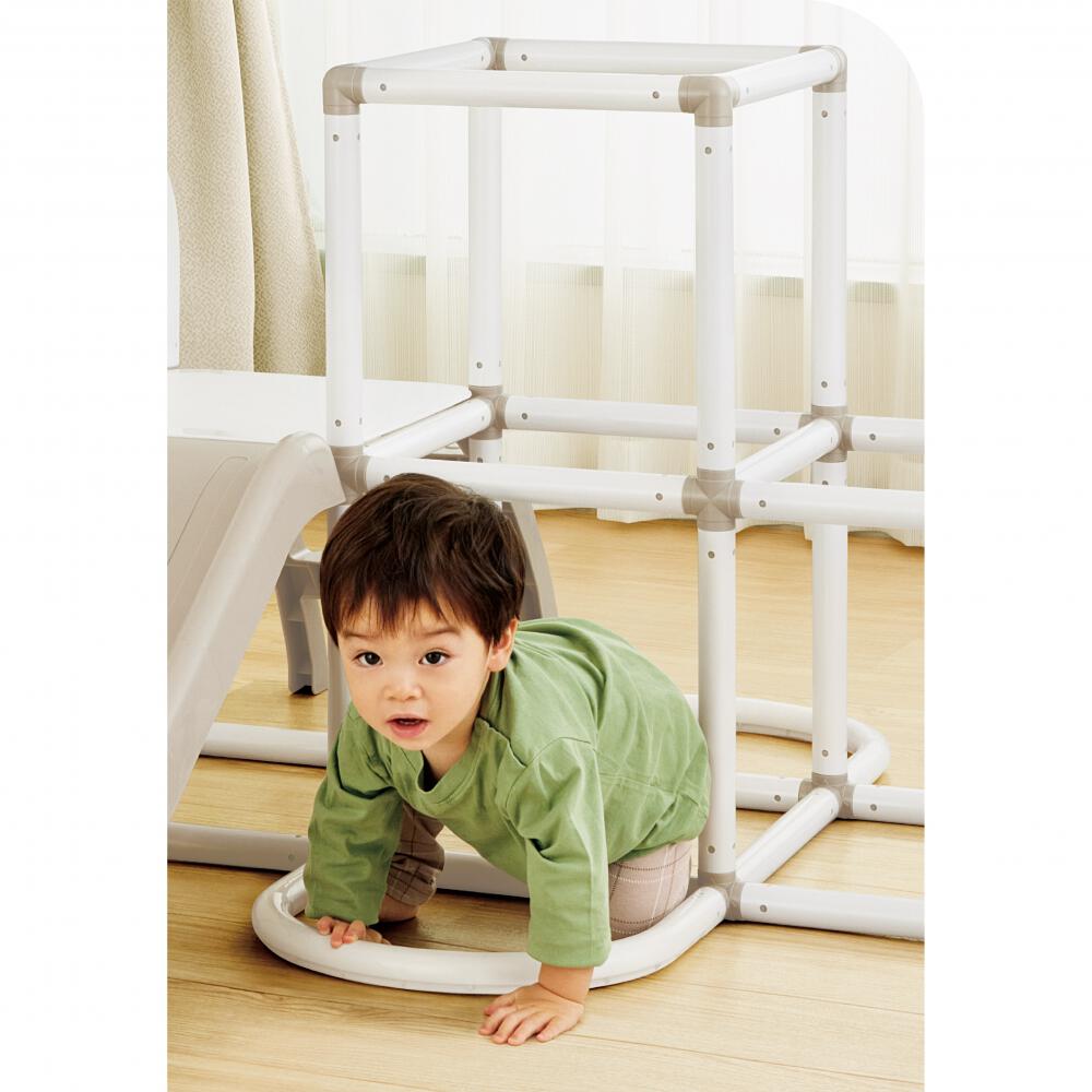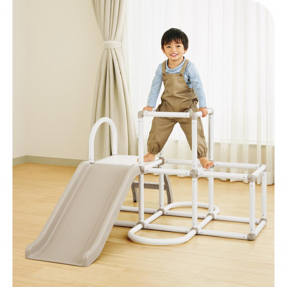 ● ジャングルジム、すべり台、全身運動を1.5才からながく楽しめる屋内用遊具です。