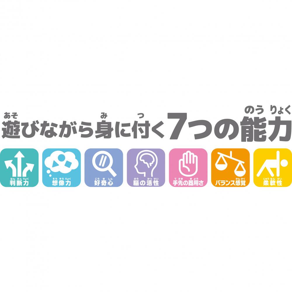 ● 判断力、想像力、好奇心、脳の活性、手先の器用さ、バランス感覚、柔軟性と遊びながら7つの能力が身につきます。