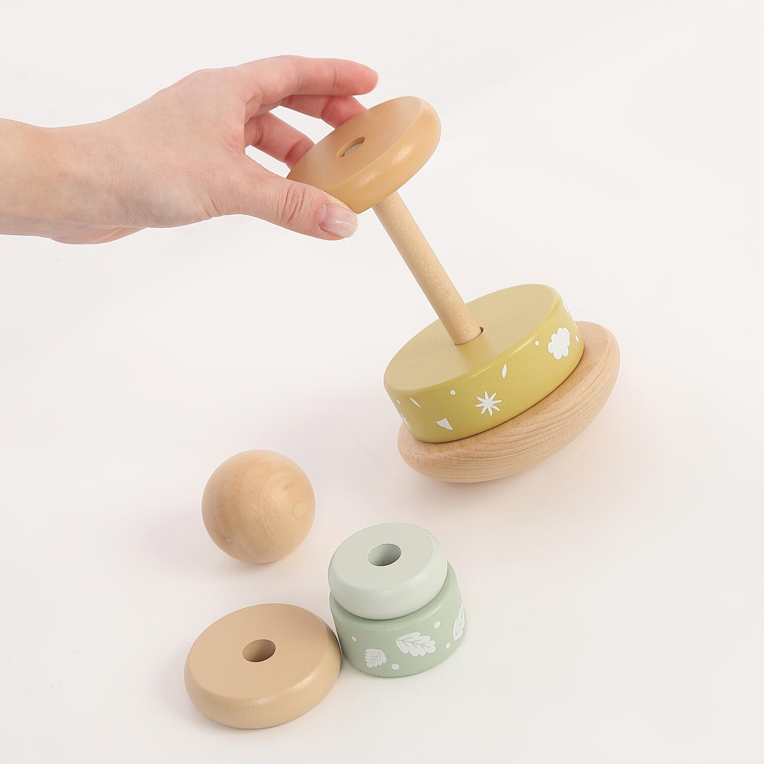 5つの北欧風の優しい色合いのリングにトップボール付き