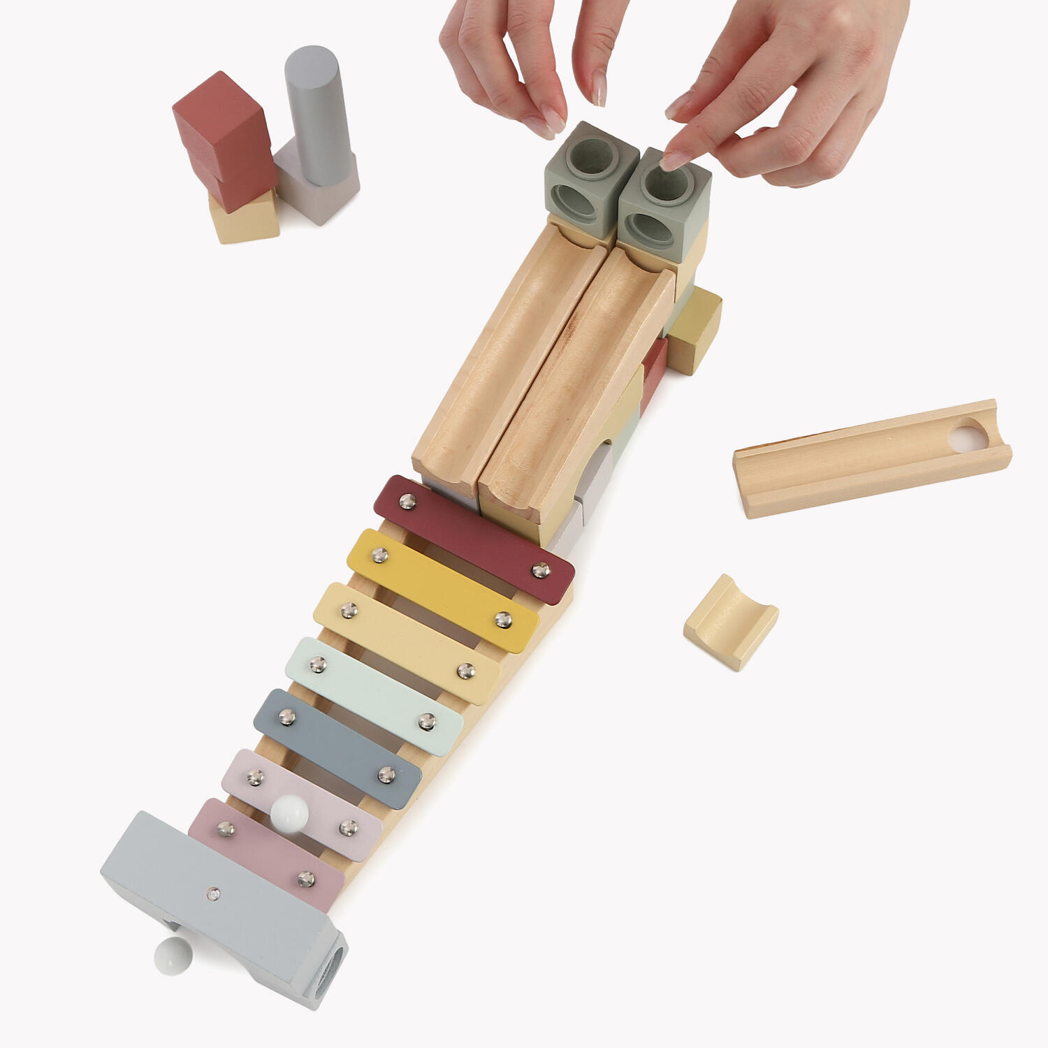 カラフルなデザインのブロックを自由に組み合わせてビー玉を転がして音色を楽しもう!