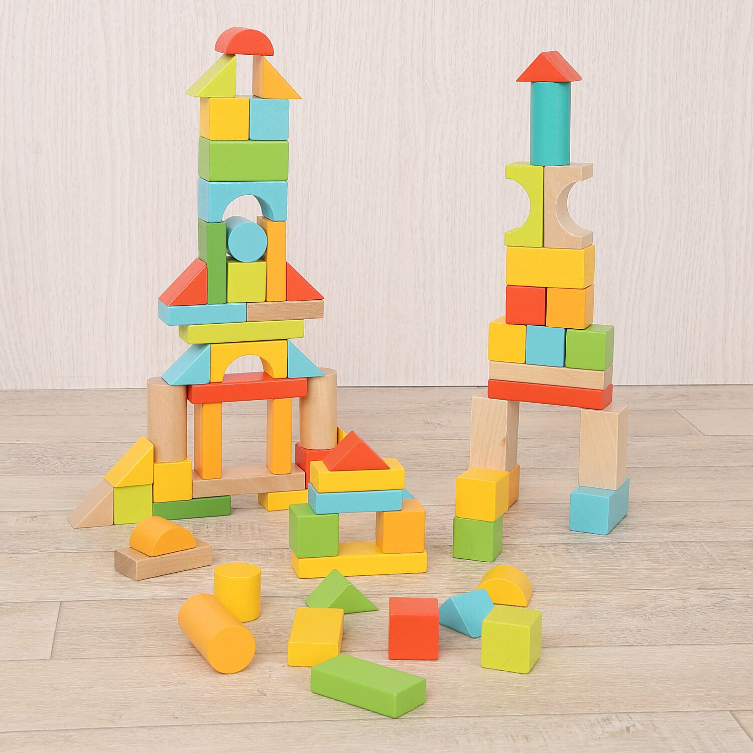 カラフルでいろいろな形の木製ブロック100ピースセット!