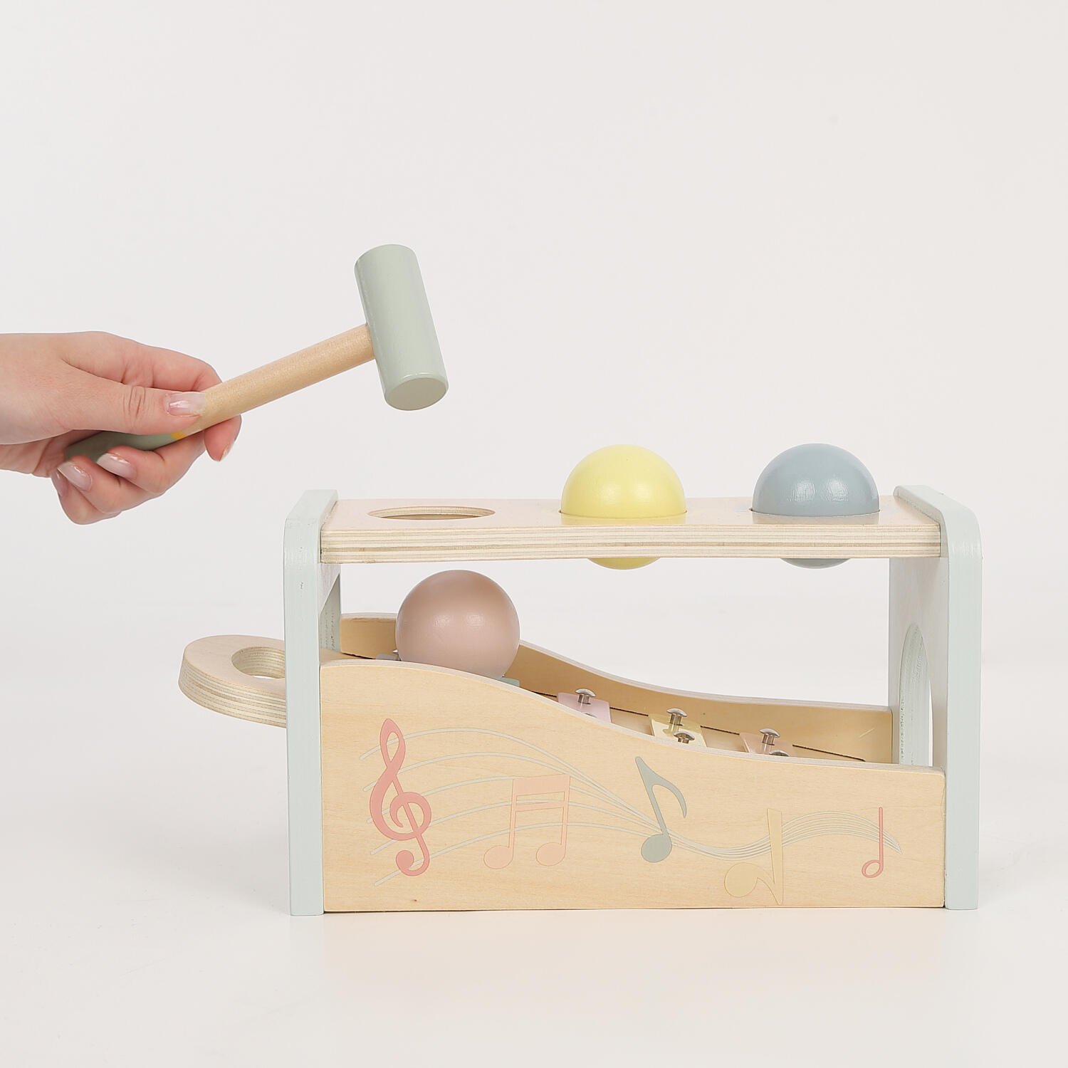 ハンマーでボールを叩いて、鉄琴の音色を楽しもう!