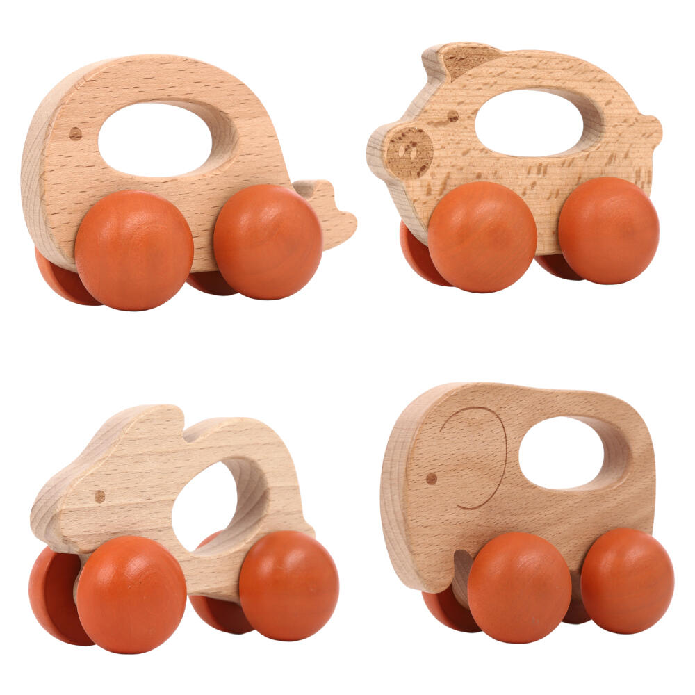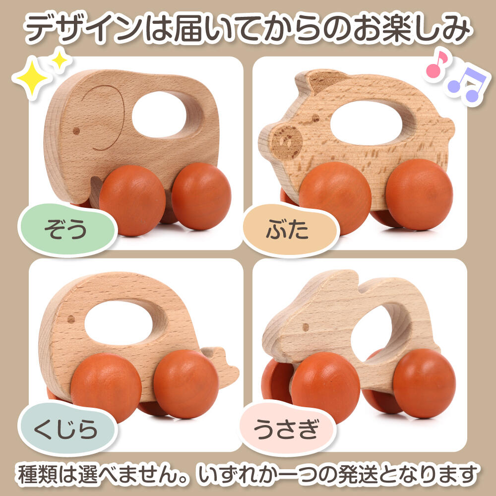 やさしい木のぬくもりとかわいらしい動物モチーフが魅力の手ころがしカーは
