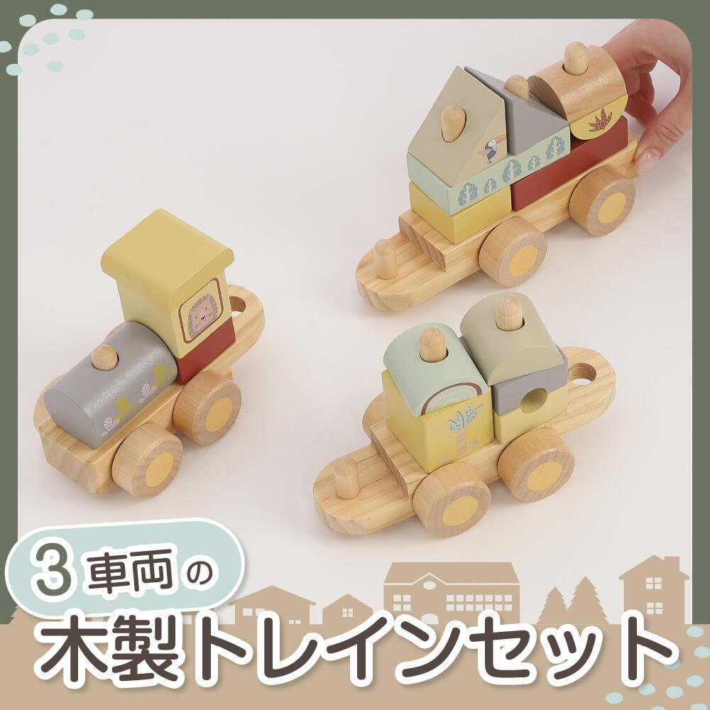 木製の3車両のトレインセット。