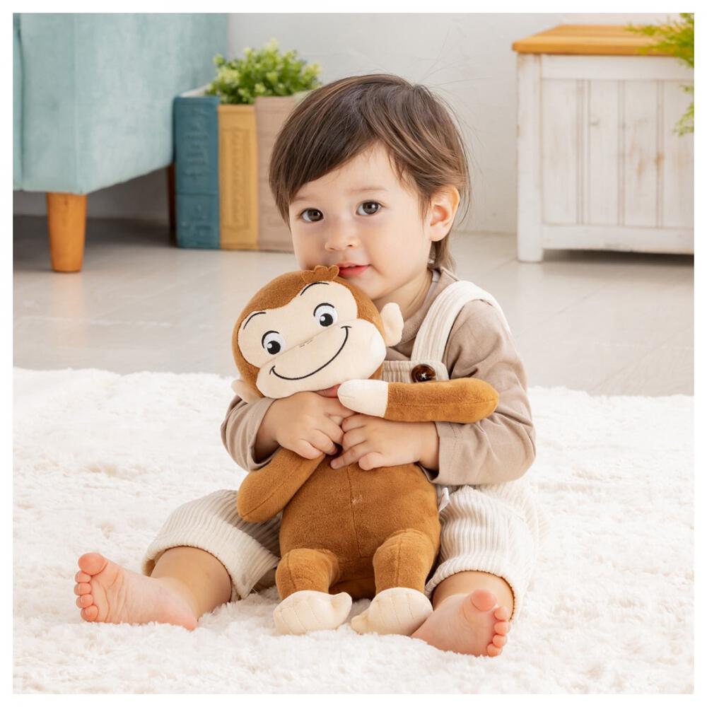 ジョージのおしゃべり、アニメのテーマ曲など豊富なメロディが入った知育ぬいぐるみです。
