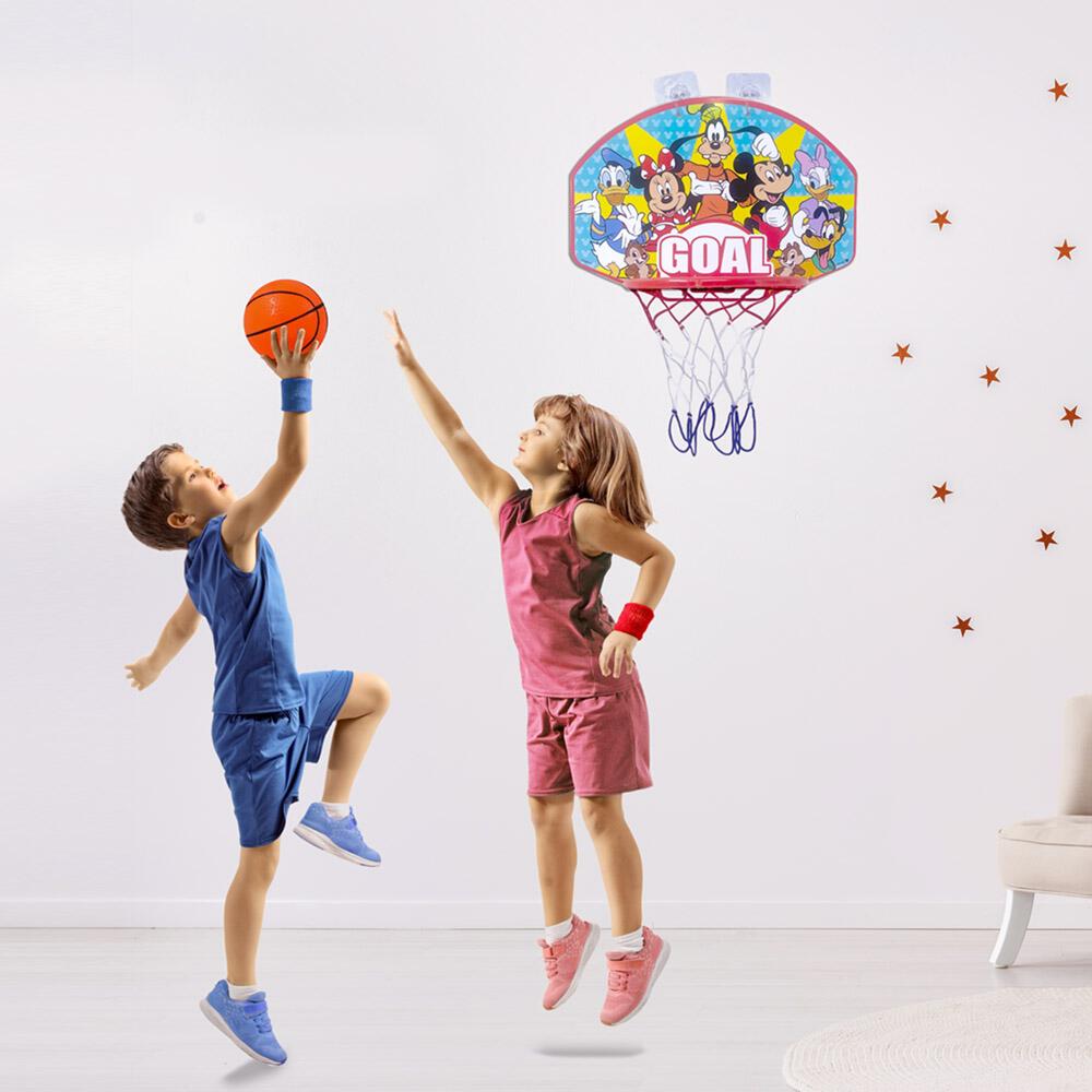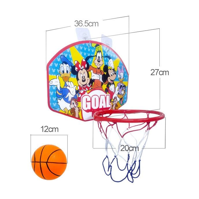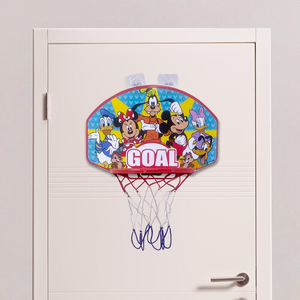 ボードにディズニーキャラクターがデザインされている壁掛け用のミニバスケットゴールセットです!