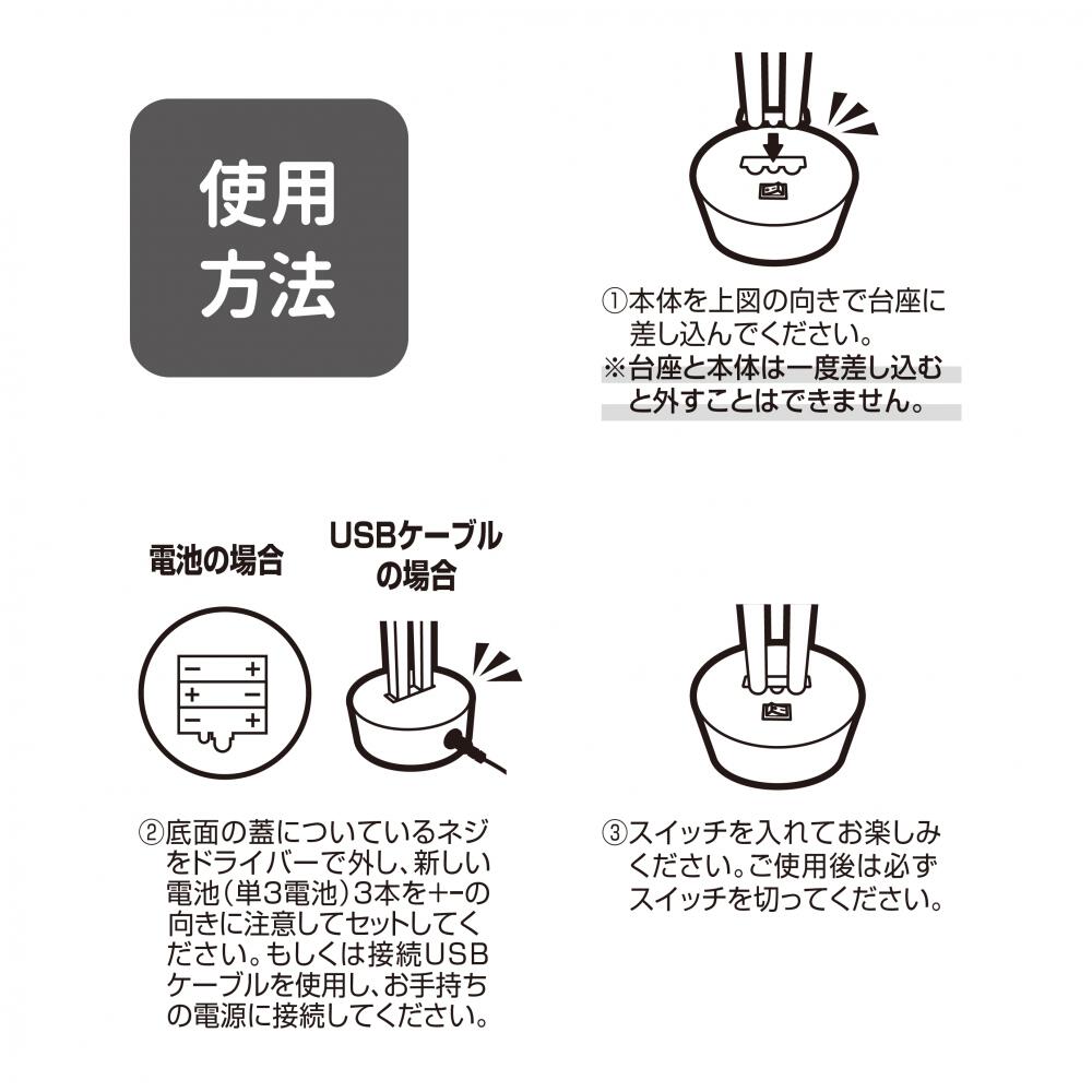 電池かUSBケーブルでの給電で光らせることができる2way仕様です。