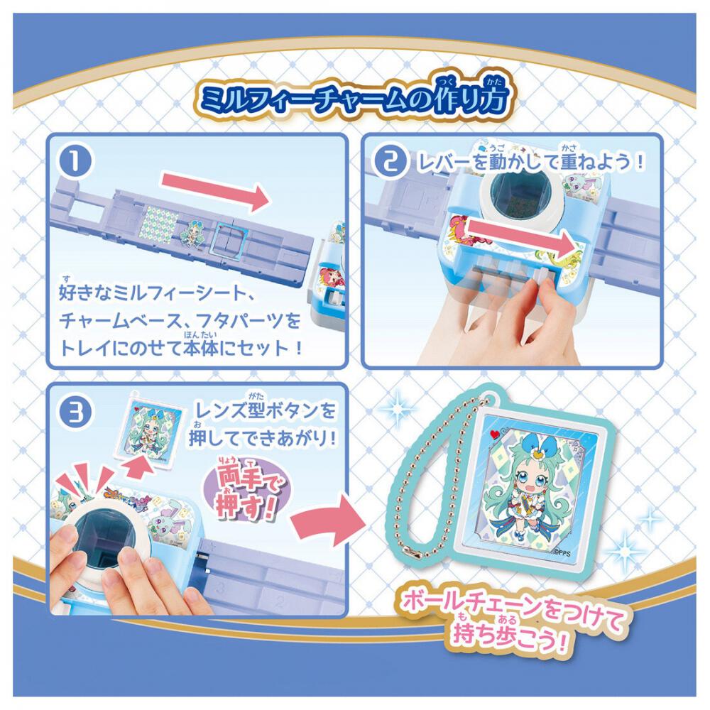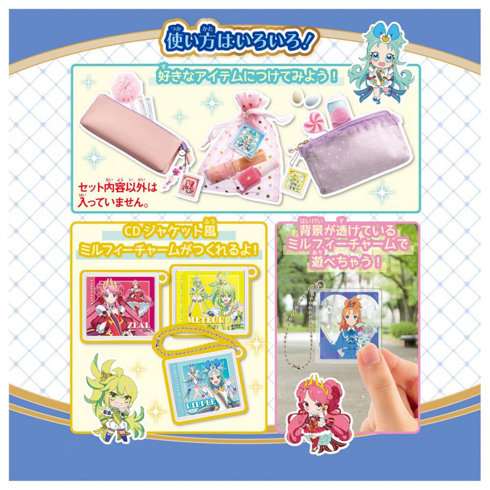 本体(1),トレイA(1),トレイB(1),フタパーツ(10),チャームベース(10),ミルフィーシート(40),ボールチェーン(5),ミルフィーチャーム完成品(1),専用シール(1),取扱説明書(1)